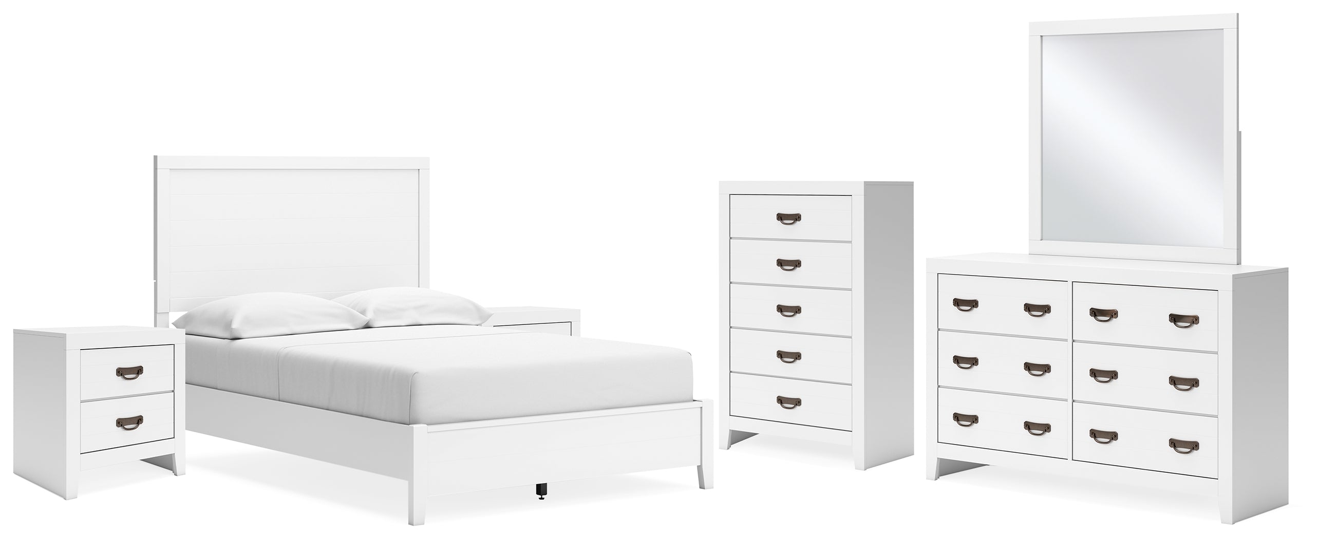 Binterglen Full Panel Bed with Mirrored Dresser, Chest and 2 Nightstands in White