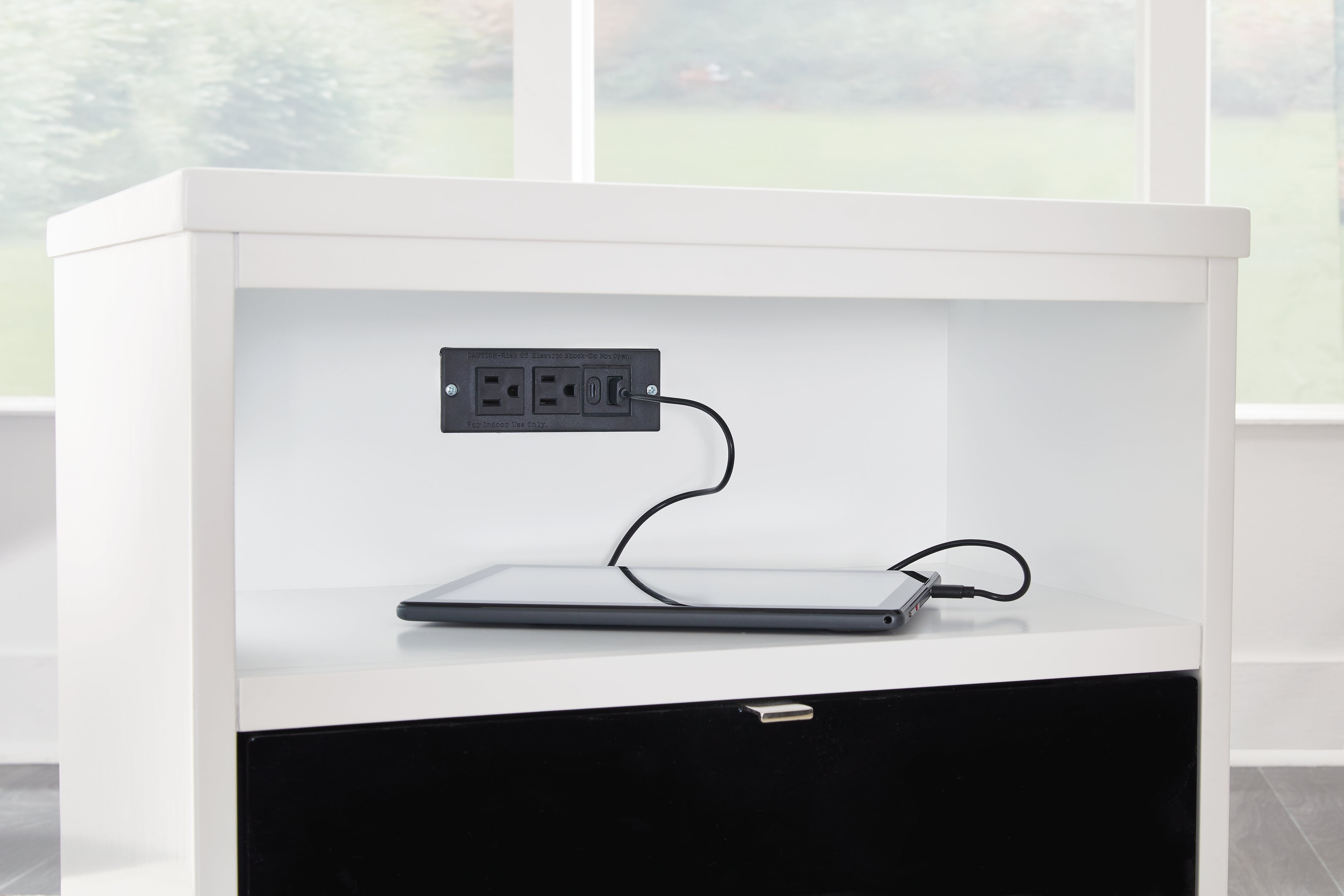 Combining a high-gloss white finish with a black drawer front, this chairside end table proves opposites really do attract. It's the perfect blend of modern style and functionality, with plenty of space for essentials and convenient USB charging. What a smart choice on so many levels. — Luna Furniture introduces Gardoni Chairside End Table to enhance the beauty of your living spaces.