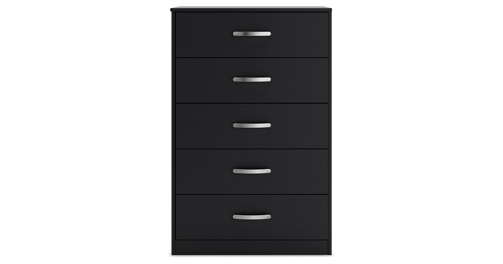 If you’re a fan of clean, crisp and contemporary interiors, rest assured this bedroom package suits you. Its linear profile is enhanced with a matte black finish with subtle replicated wood grain. Spacious drawers with sleek metal pulls add to this set's streamlined aesthetic.