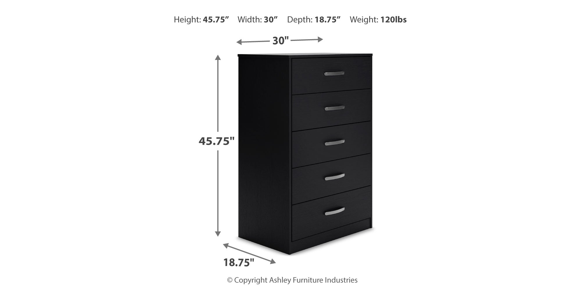 If you’re a fan of clean, crisp and contemporary interiors, rest assured this bedroom package suits you. Its linear profile is enhanced with a matte black finish with subtle replicated wood grain. Spacious drawers with sleek metal pulls add to this set's streamlined aesthetic.