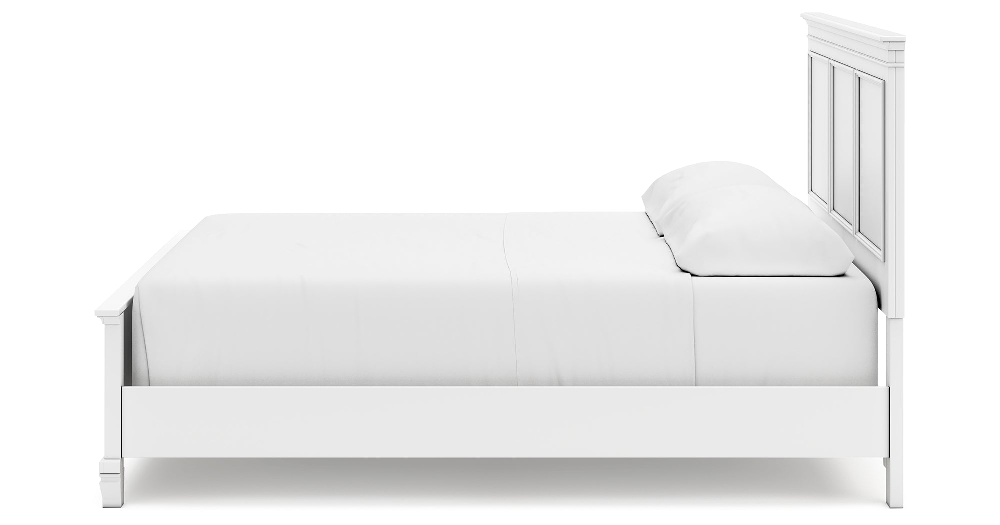 Fortman California King Panel Bed with Mirrored Dresser and Chest in White