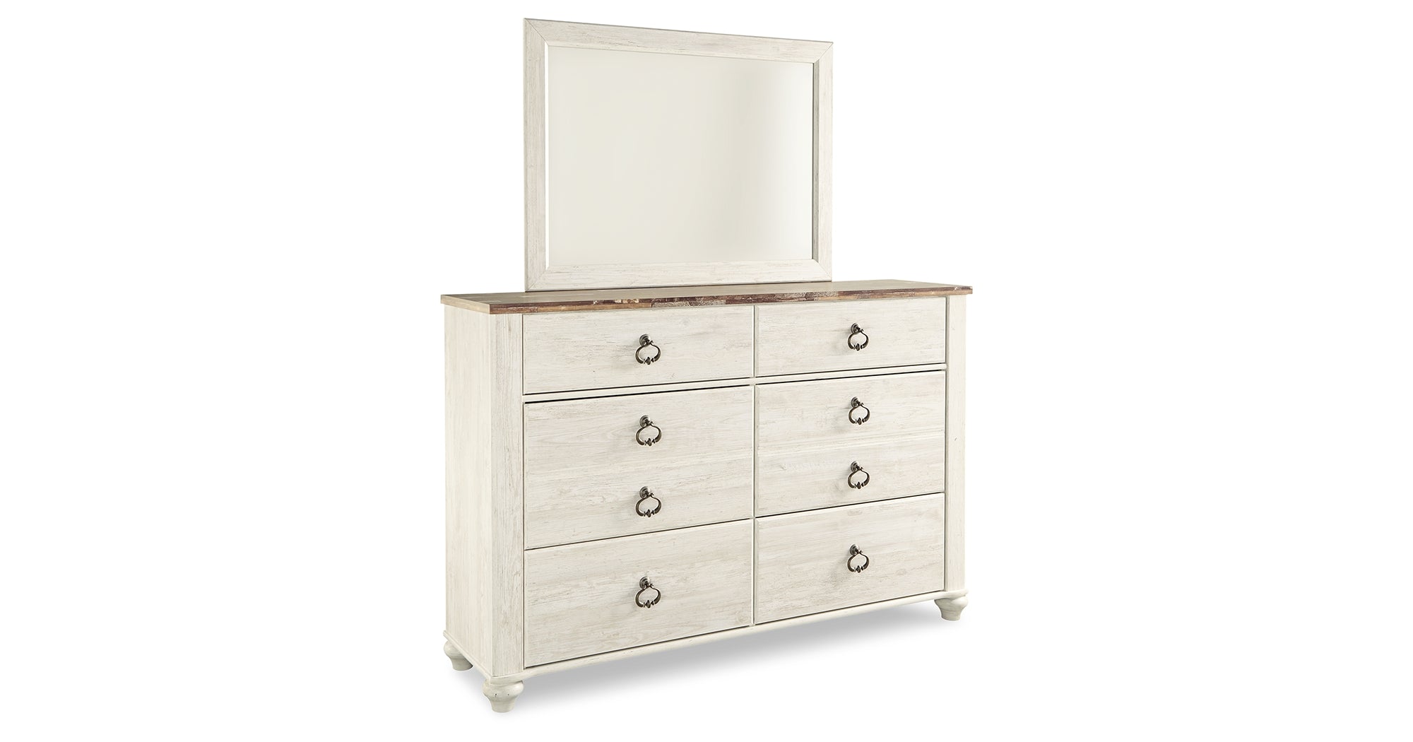 Willowton Whitewash Queen Sleigh Bed, 2 Dressers, Mirror, Chest and 2 Nightstands