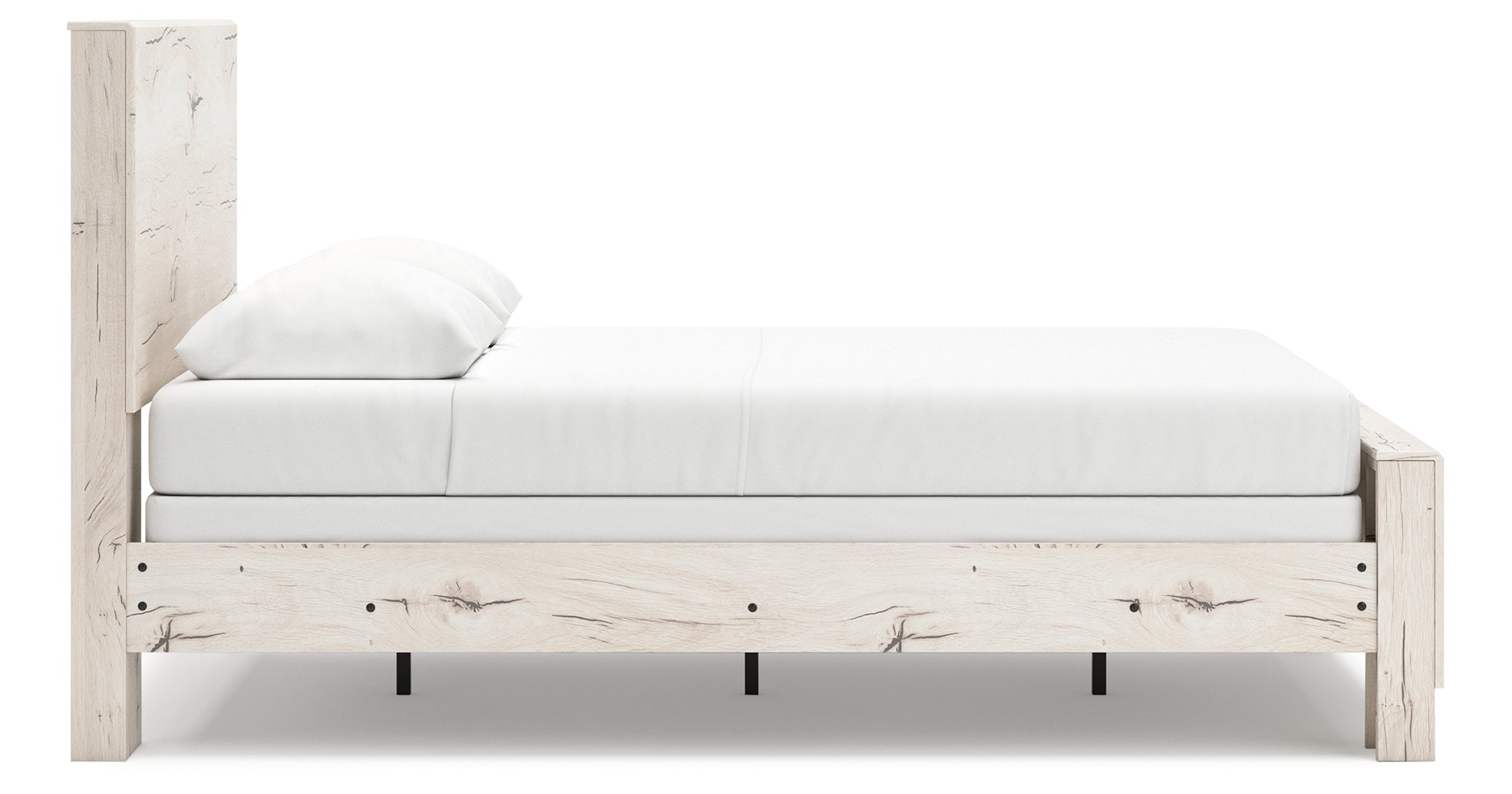 Blending timeless charm with modern simplicity, this panel bed is available in Queen and King size options. The rustic white finish over replicated reclaimed oak grain delivers a clean, farmhouse-inspired look that feels warm and inviting. Crafted from engineered wood and decorative laminate, it includes a panel headboard, footboard, and rails for reliable everyday durability. A foundation/box spring required setup ensures proper support, with mattress sold separately. Minor assembly is needed. An optional 5-piece bedroom set includes the panel bed, dresser, mirror, nightstand, and chest for a complete and cohesive bedroom upgrade.