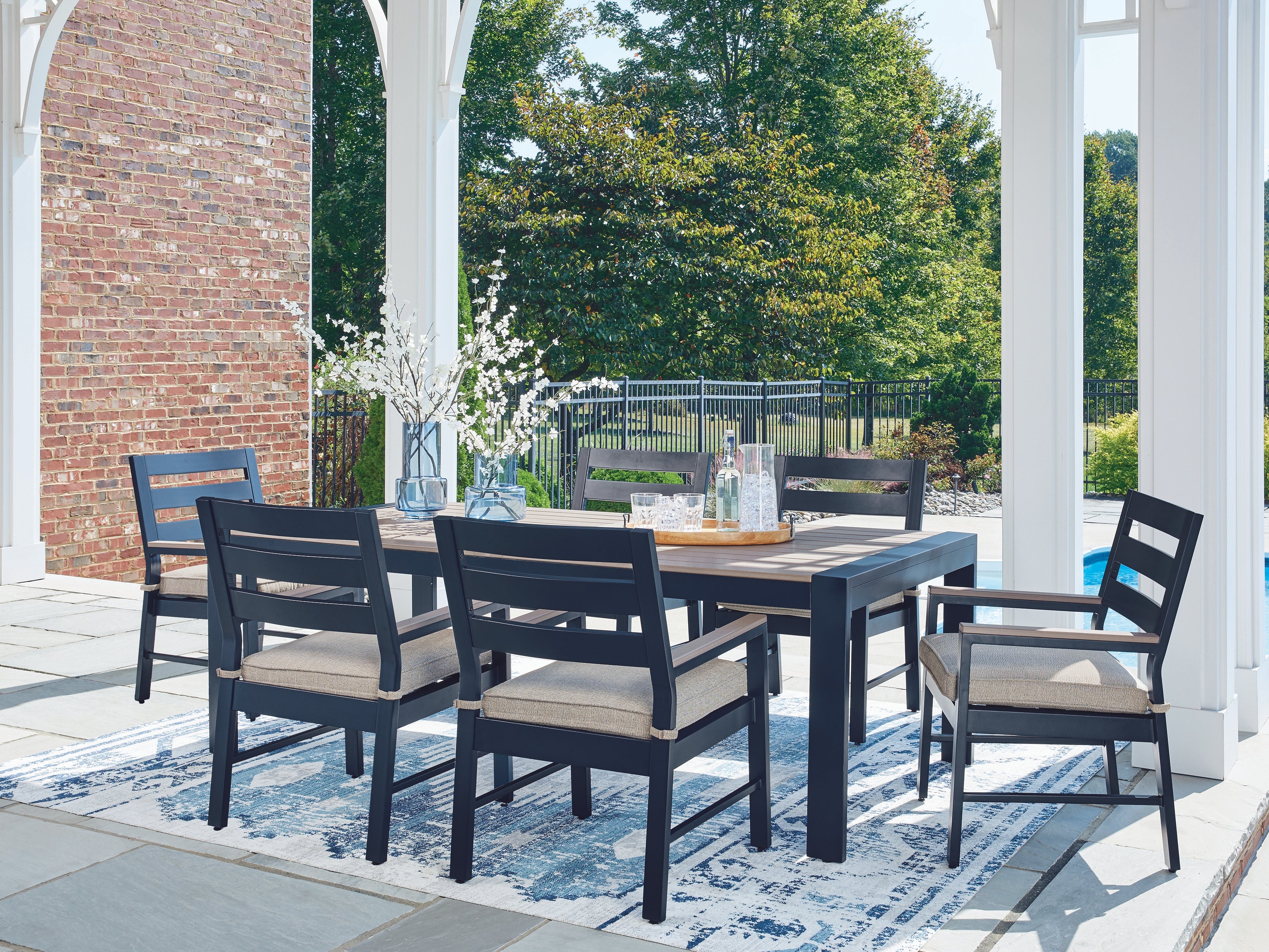 East Beach Outdoor Dining Table and 6 Chairs in Navy Blue/Driftwood