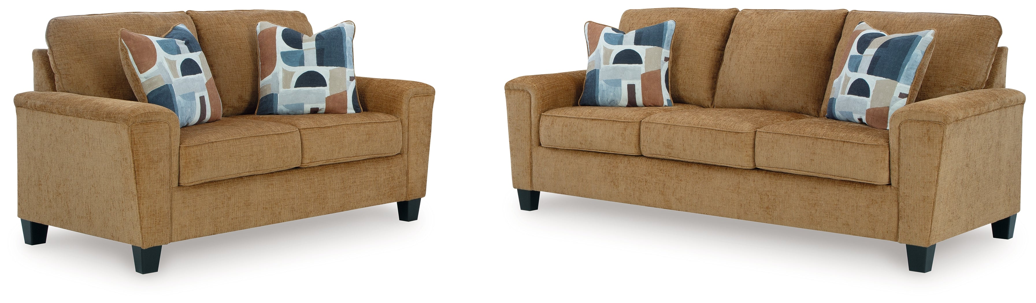 There’s something about this seating package that’s so easy to appreciate. Maybe it’s the plush upholstery and comforting earthy tone, eager to support your quest for total relaxation. Perhaps it's the modern flair of its simple lines, tapered accent legs and abstract-patterned accent pillows. Whatever it is that appeals to you, this is a set you're gonna love.