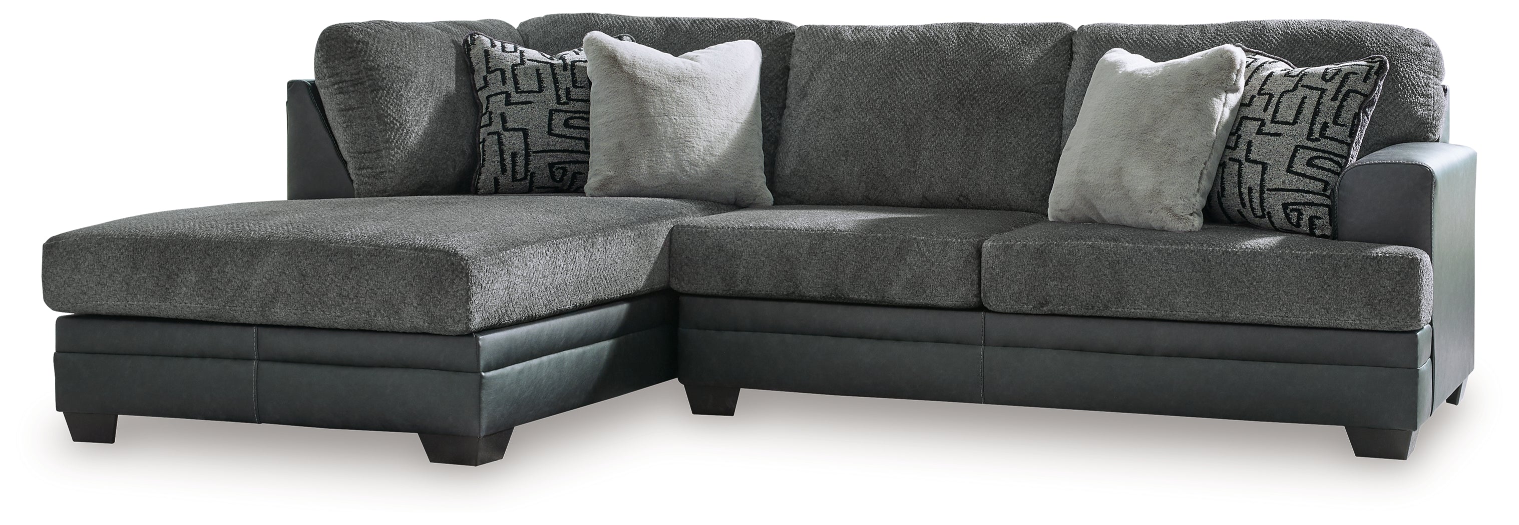Includes 2 pieces: left-arm facing corner chaise and right-arm facing sofa