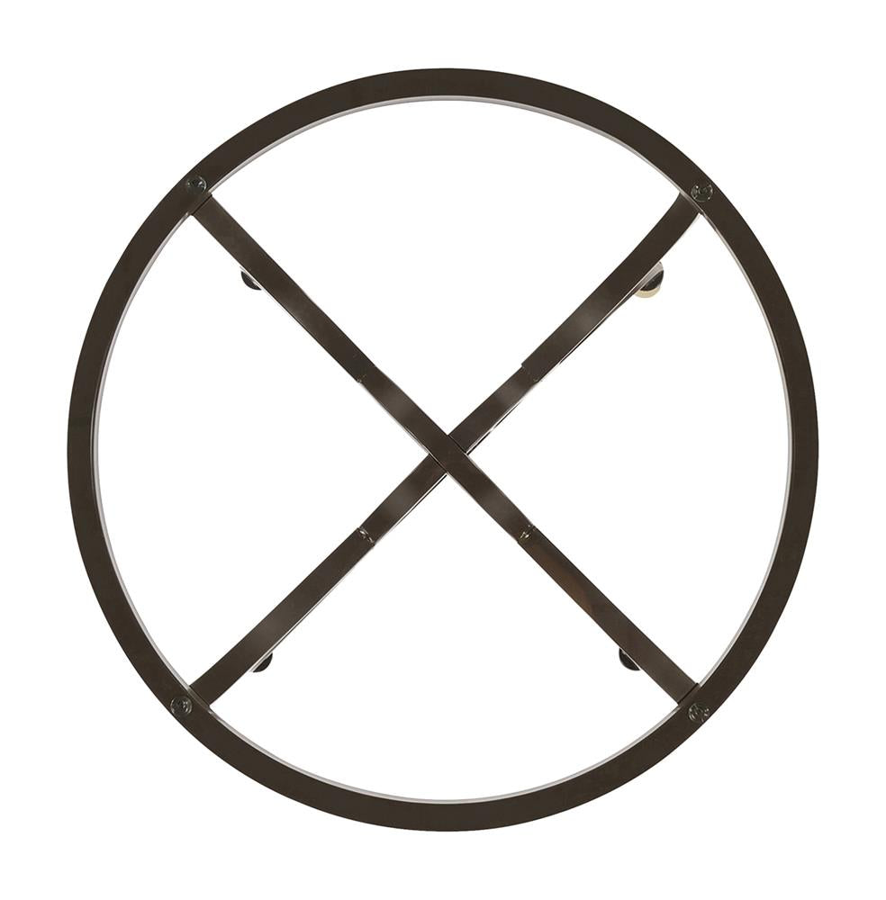 Curves abound on this intriguing transitional glass dining table. Featuring a casual and inviting aura, the table boasts a round of clear glass resting on a bold base. The base shows off metal construction with four stylized M legs that meet in an interlocking ring motif. A gunmetal finish lends a rich final touch. This 30-inch table is perfect for a stylish breakfast nook or eat-in kitchen.