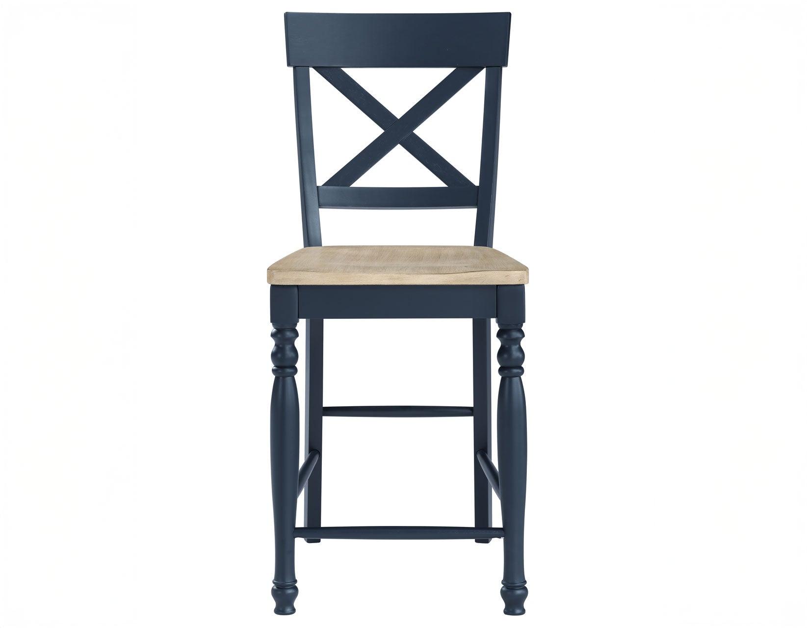 Add timeless charm to your space with the Darcy Solid Wood 24″ Counter Chair, designed for 36-inch high counters. Its modified Napoleon X-back blends traditional elegance with modern versatility, while the two-tone finish combines deep midnight blue and a natural wood seat, showcasing warm, rustic-modern appeal. Turned front legs bring farmhouse charm, and clean lines keep the look fresh. Crafted for comfort and durability, the contoured seat invites relaxation, perfect for meals or gatherings. Ideal for dining rooms, kitchens, or breakfast nooks, it balances style and function beautifully.