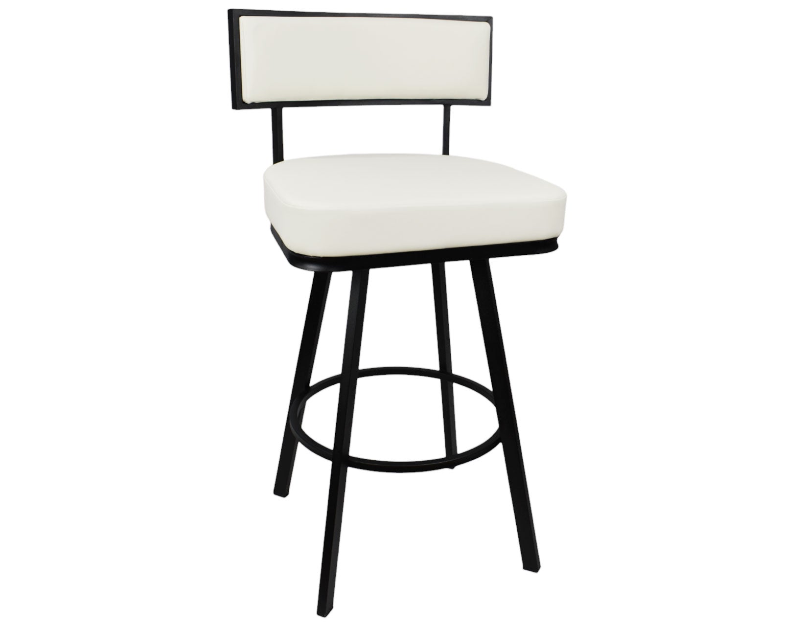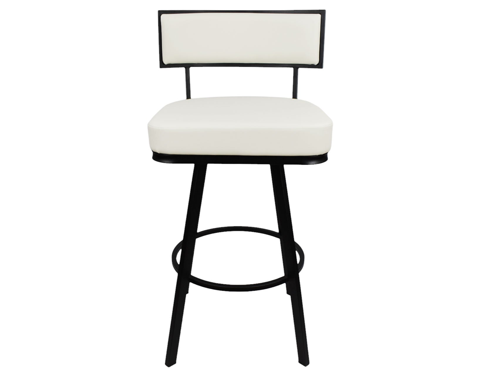Experience cool, modern design with the Zenon 30″ Bar Stool. Perfectly suited for 42-inch high counters, this stool offers cushioned seating in a classic black and white scheme. The 360° swivel and built-in footrest ensure complete relaxation, turning your counter into a serene refuge. The white vegan leather seat and back provide the luxurious look of leather with easy-care convenience, while the black powder-coated base guarantees durability without the worry of chips or maintenance. Elevate your counter seating with the stylish and functional Zenon Counter Stool.