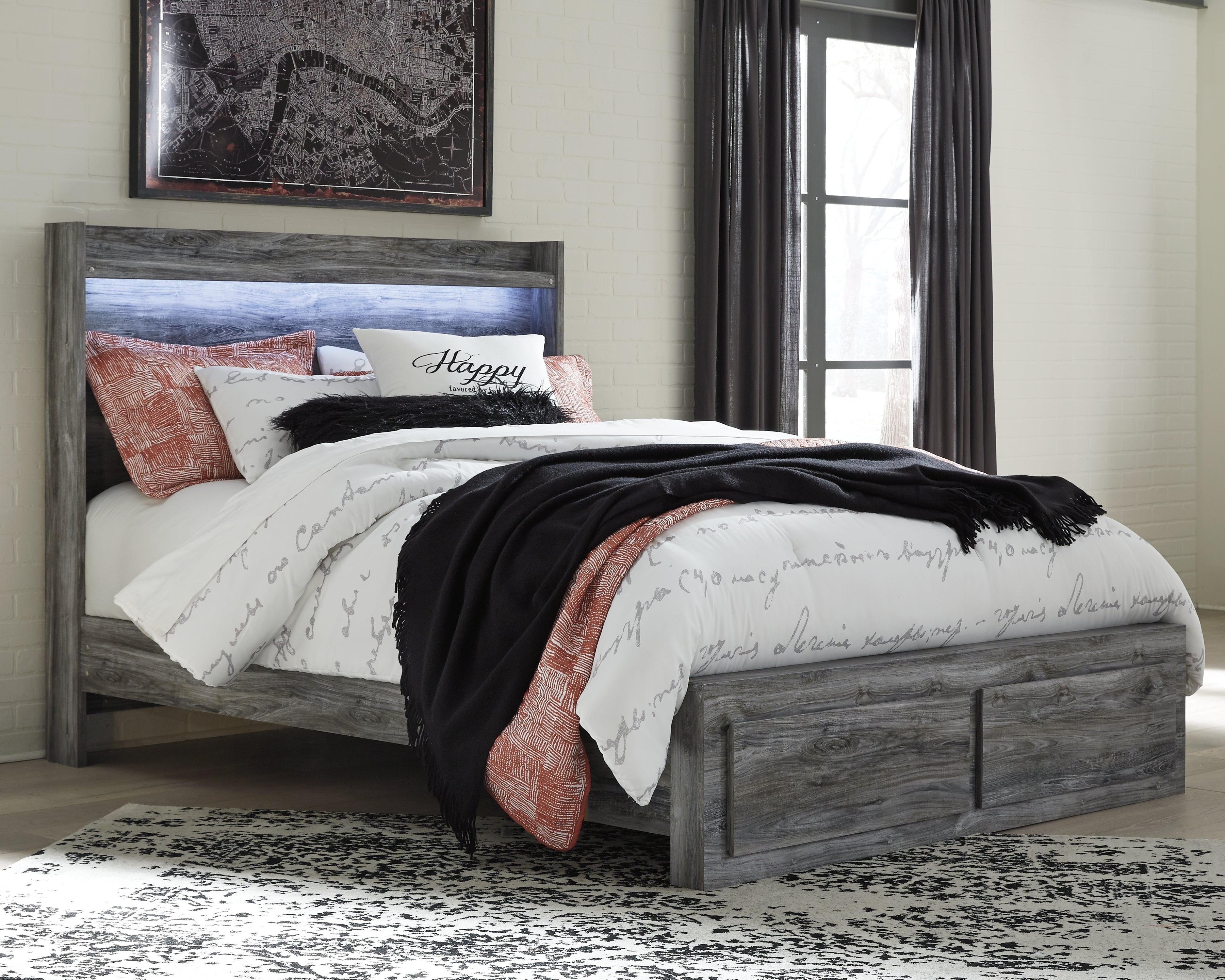 Baystorm Queen Storage Bed, Dresser, Mirror and Chest