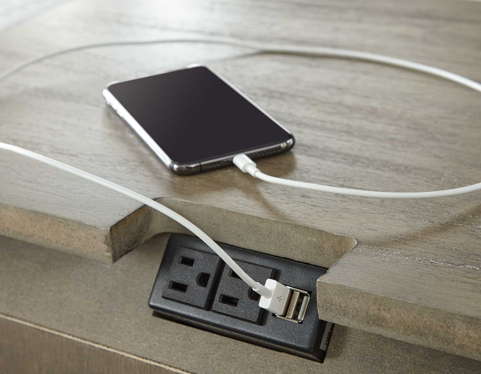 • Nightstand features 2 USB connections for easy recharging and eletrical for easy access