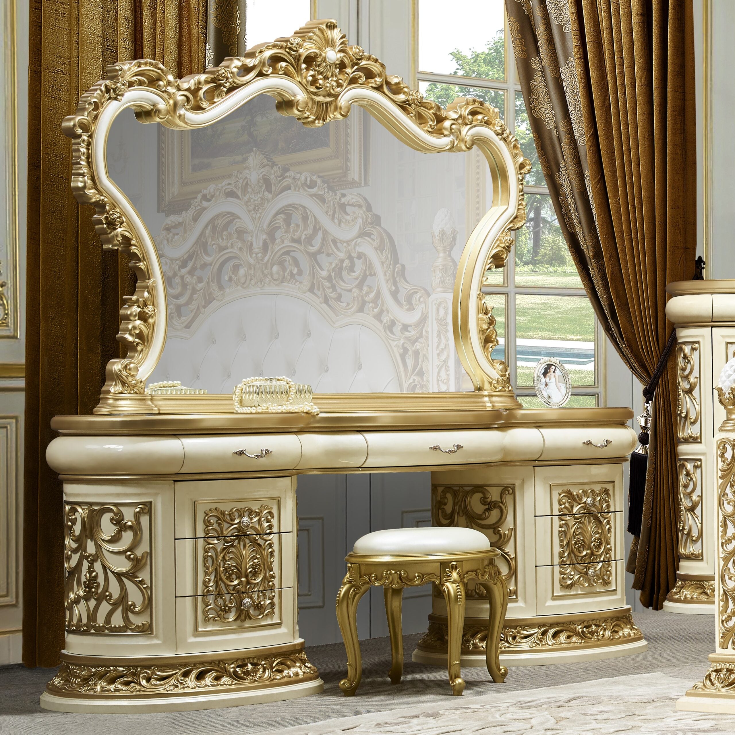 - Finish: Antique White & Gold