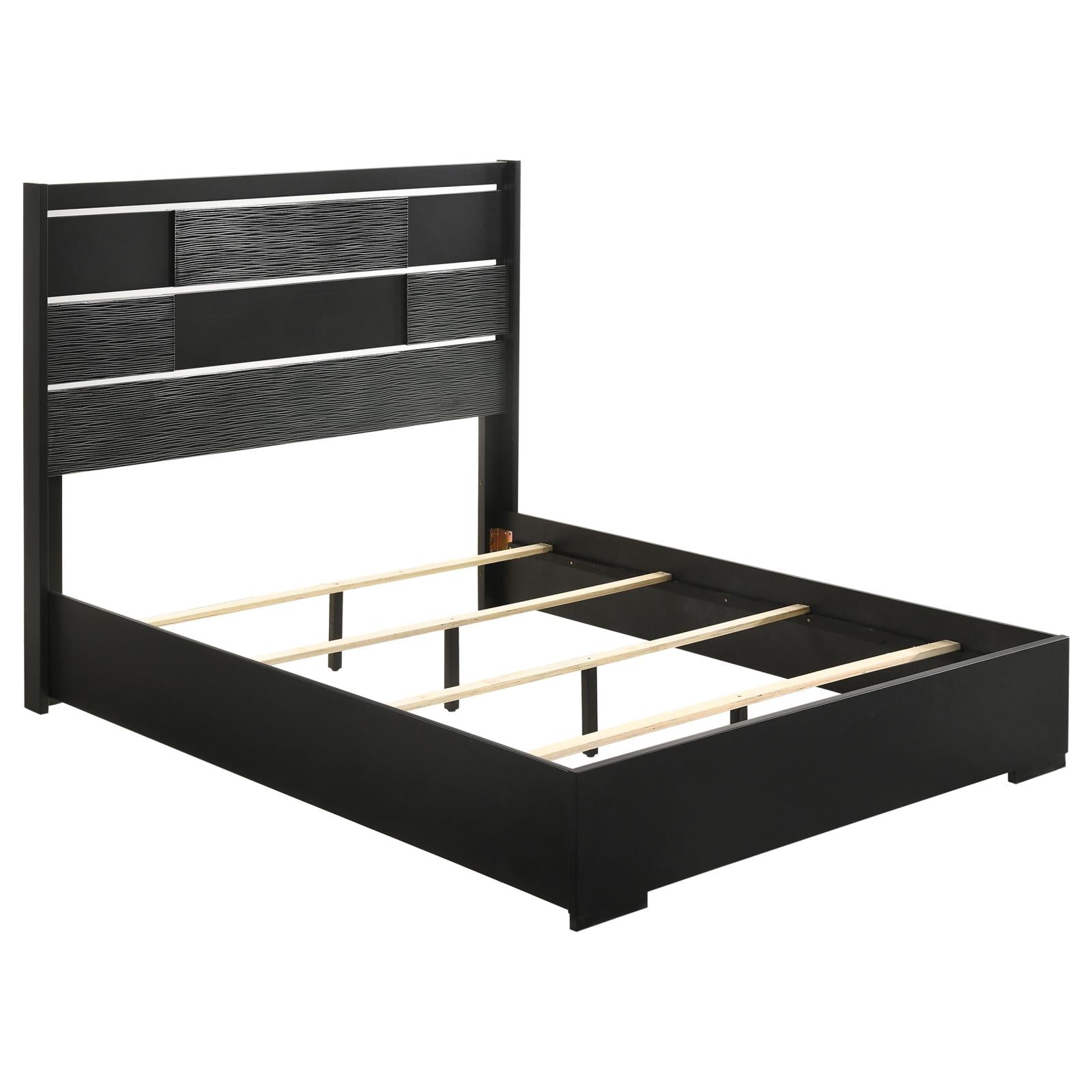 Gleaming chrome accents add alluring elegance to this beautiful, wooden bed frame.The straight, solid headboard makes it a perfect match for a variety of decor styles.Durable, Asian hardwood construction ensures plenty of support to promote restful sleep.Chambered trim adds beautiful dimension to its chic, stylish design.This bed is available in a variety of colors to match with most any palette.