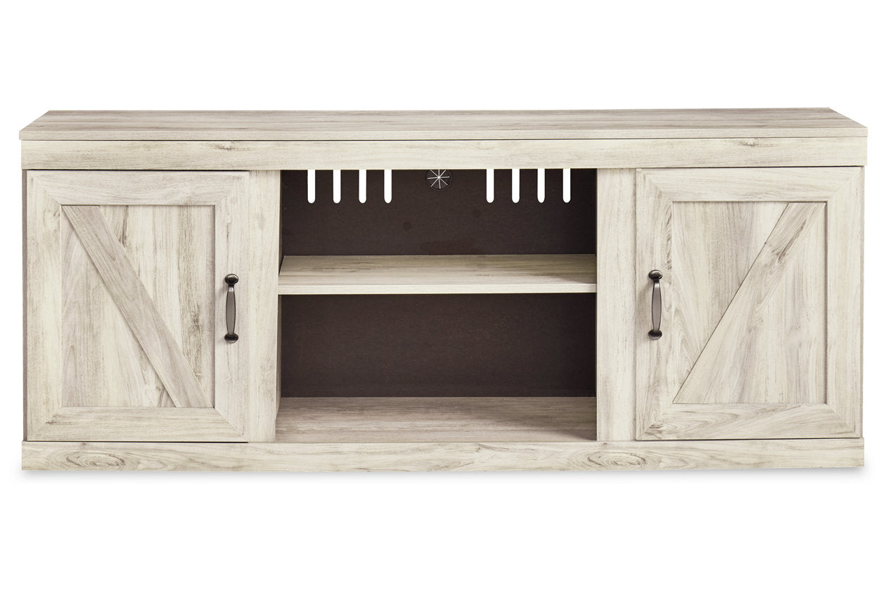 Express your modern farmhouse style with this entertainment center. Its wispy white finish over replicated oak grain is a delightful change from the ordinary. Clean-lined, classic styling with barn door inspiration provides a country-chic aesthetic that’s a breath of fresh air. Luna Furniture introduces Bellaby 4-Piece Entertainment Center to enhance the beauty of your living spaces.