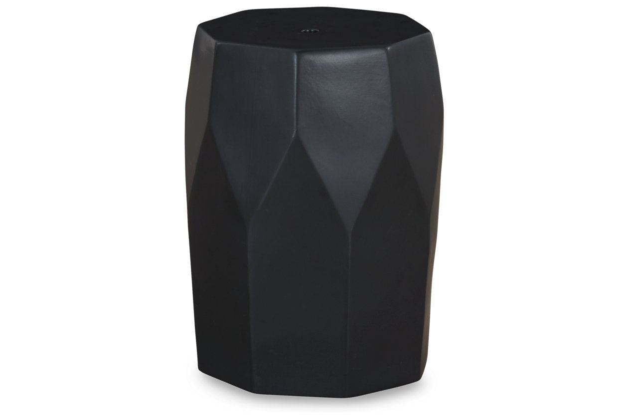 Bring fresh flair to an indoor or outdoor space with this contemporary accent stool. Next to a chair, it's the perfect place to set down a drink. And what a pretty perch for a draping plant. However you use it, you're sure to appreciate its bold faceted sides and edgy matte black finish. — Luna Furniture introduces Rhysworth Stool to enhance the beauty of your living spaces.