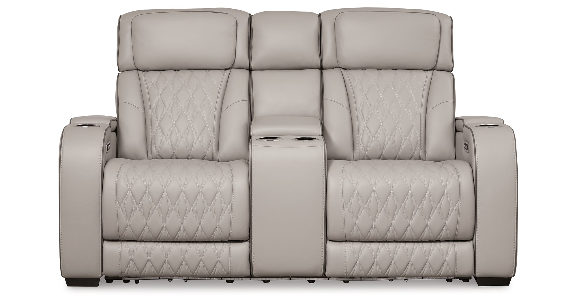 Ready to take your reclining experience to the next level? Then sit up and take notice. With this power reclining loveseat, ultimate relaxation is at your fingertips. Experience the pure bliss of an air massage system and heated seats at the touch of a button. Plus the luxurious diamond-stitched upholstery is easy on the eyes, adding elegance to any space. — Luna Furniture introduces Boyington Power Reclining Loveseat with Console to enhance the beauty of your living spaces.