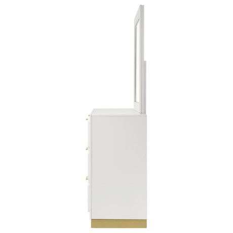 The Caraway Collection by Coaster is a modern bedroom set featuring a sleek design with clean lines and rounded panels for a touch of elegance. The collection is crafted with durability in mind, using a paper laminate finish that resists scratches and everyday wear and tear.