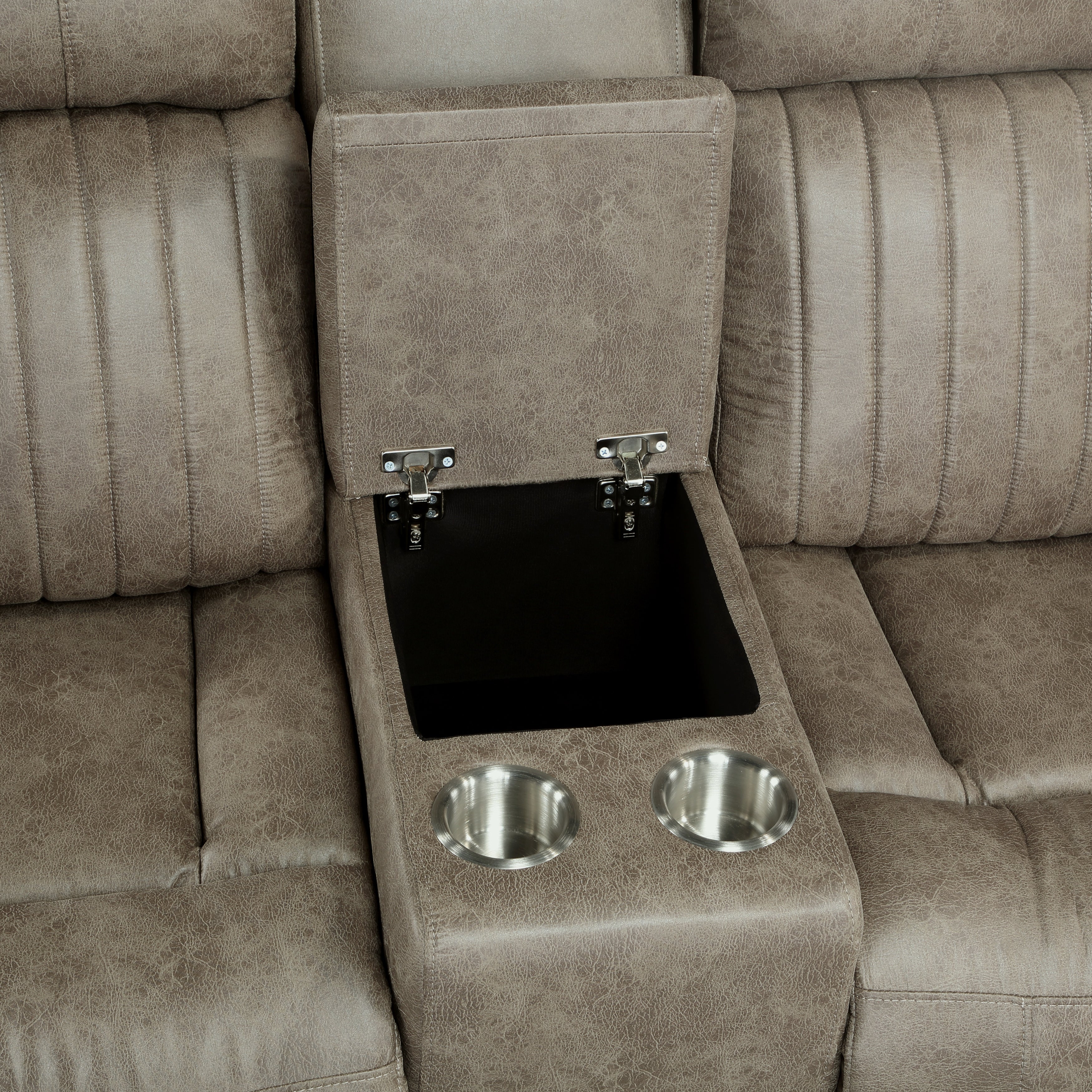 Centeroak Sandy Brown Double Reclining Loveseat with Center Console