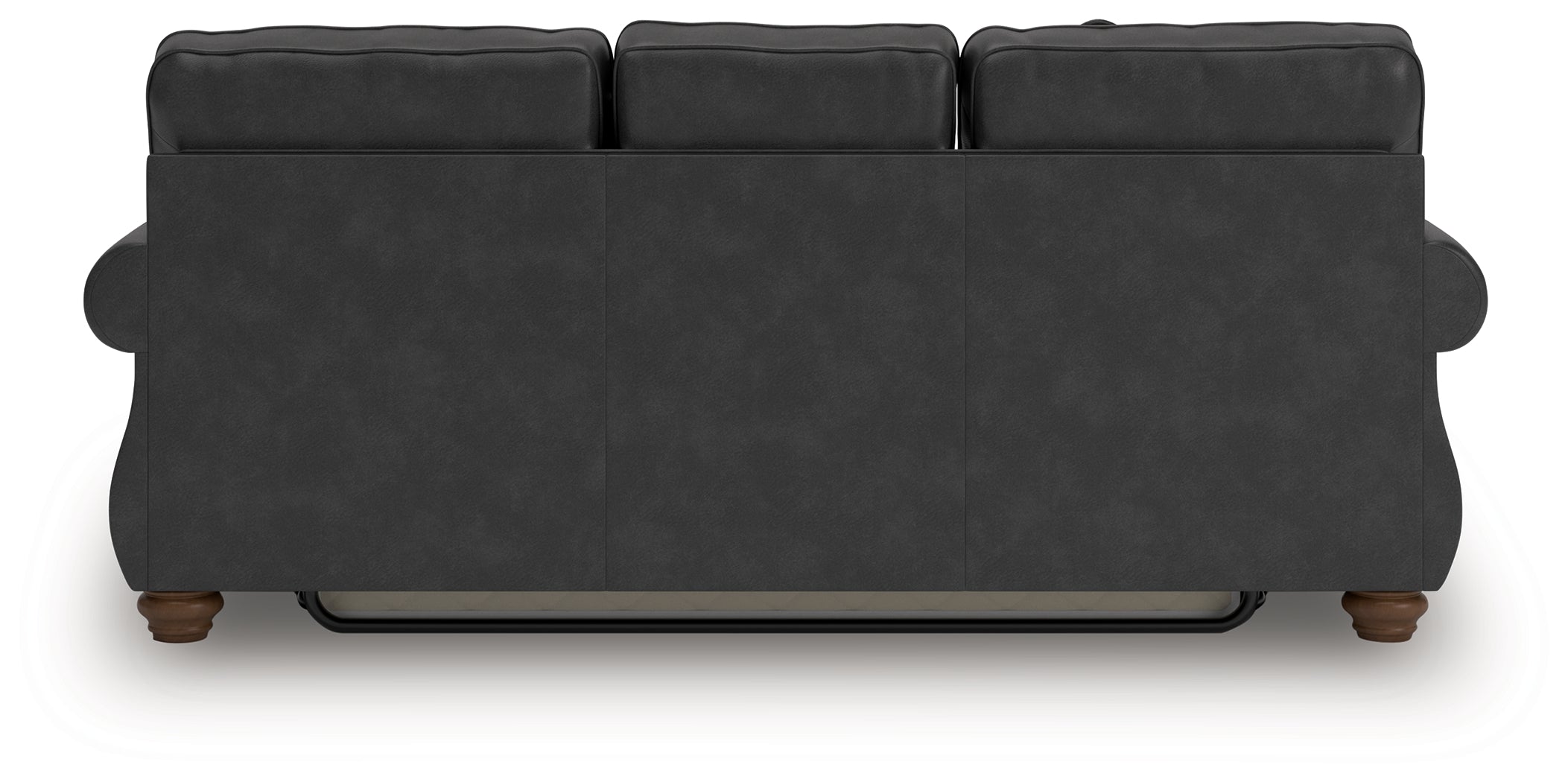 Everyone can have the best rest in the house with this queen sofa sleeper. Its nailhead trim puts the finishing touches on the traditional roll arms you love. The sofa's comfy, durable cushions—wrapped in a rustic yet sophisticated faux leather—keep you feeling relaxed, while its turned legs show that style and quality flow from top to bottom. A pull-out queen mattress made with quality memory foam comfortably accommodates overnight guests.