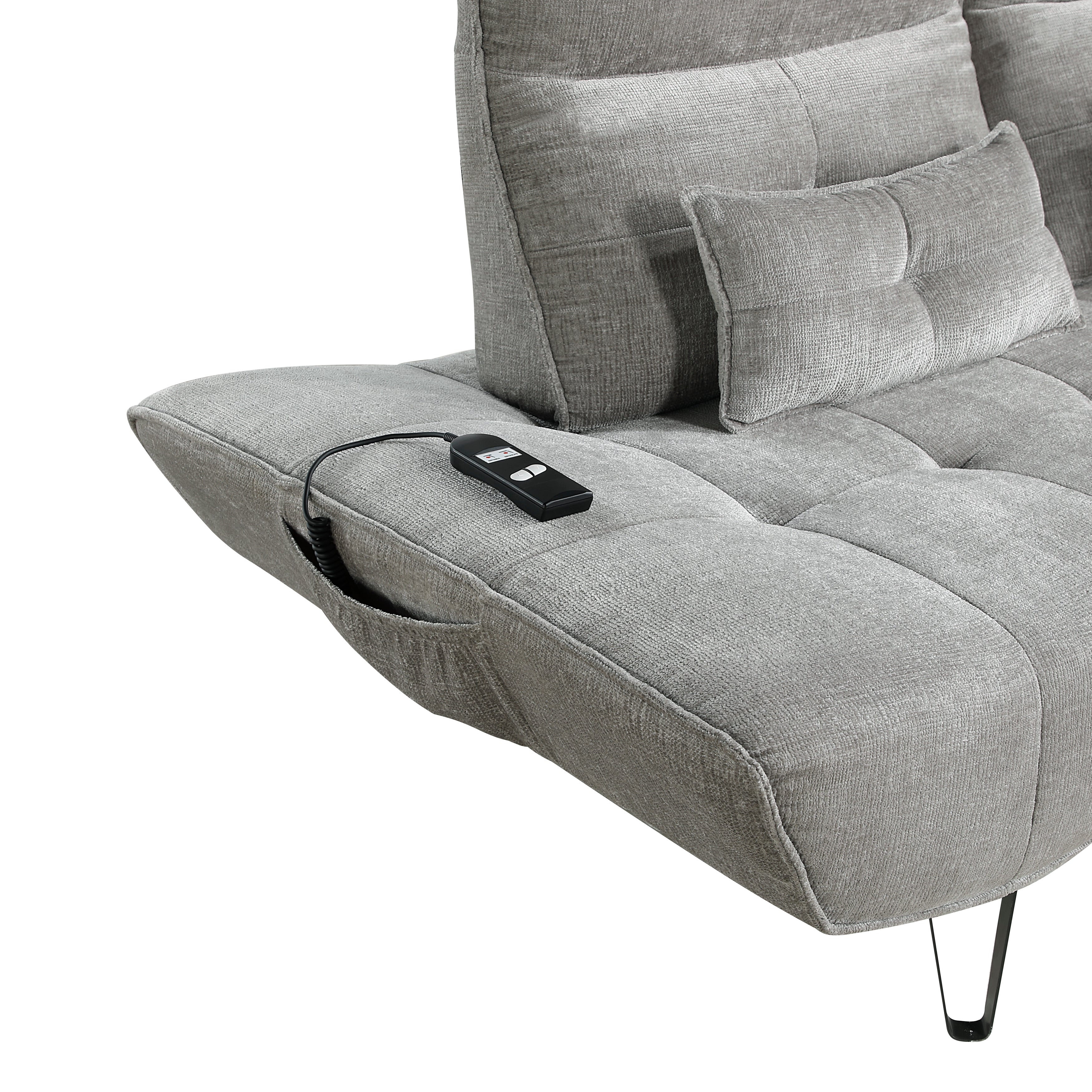 Transform your living space with this beautifully crafted Quonsett sofa in gray chenille fabric. Designed for comfort and functionality, the sofa features a power adjustable seat depth, allowing you to customize your seating experience. The manual adjustable headrest provides extra support for relaxation, while the included decorative pillows add a touch of style. Perfect for modern homes, this sofa combines luxurious upholstery with practical features for an elevated lounging experience.