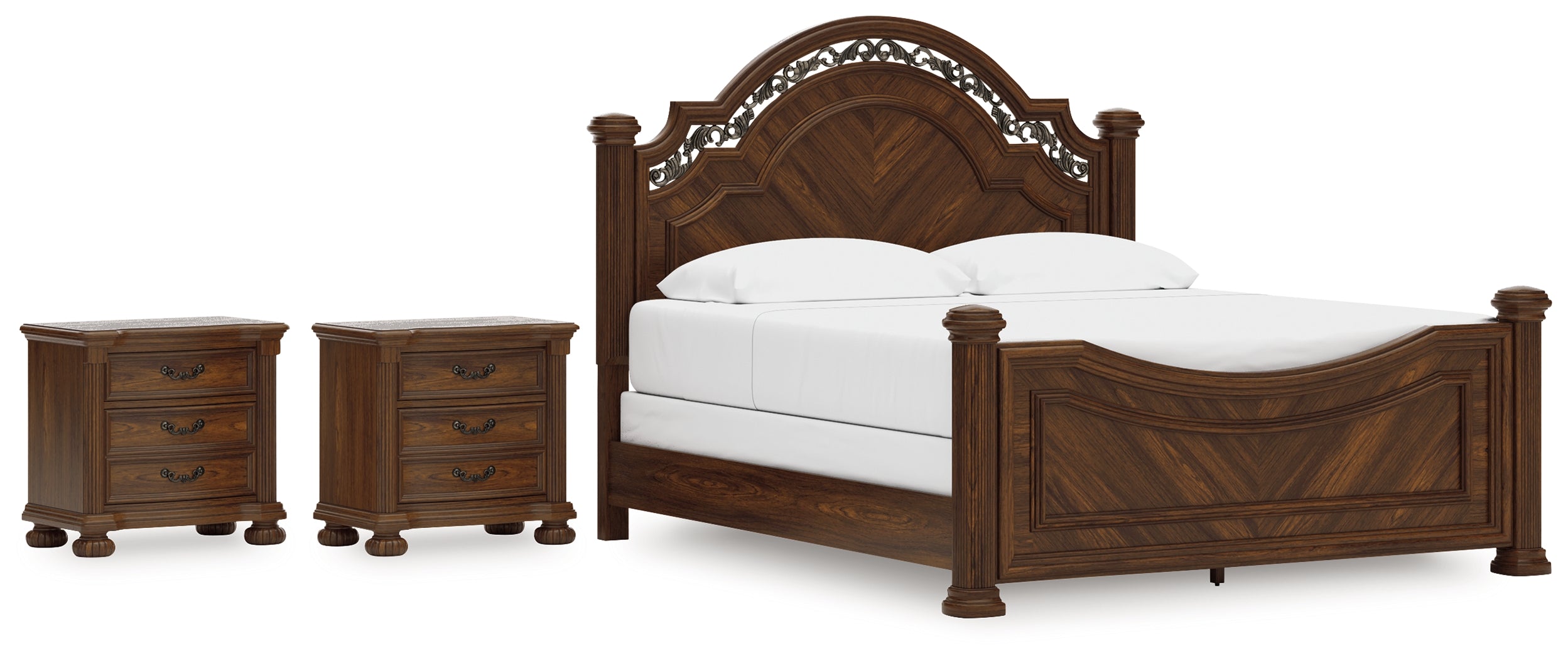 Lavinton King Poster Bed with 2 Nightstands in Brown