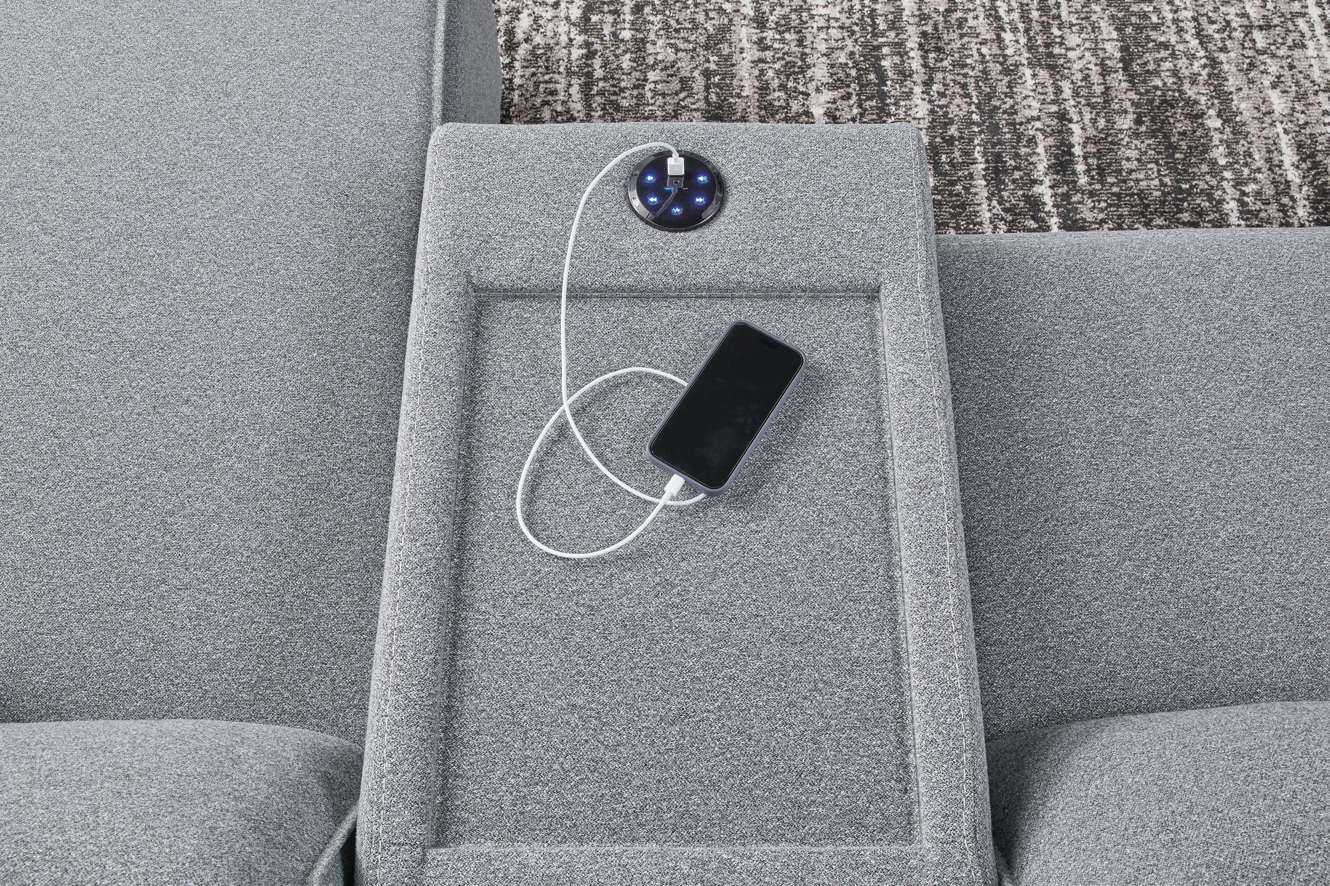 Modmax II Salt and Pepper 7-Piece Power Reclining Sectional with 2 Audio Consoles