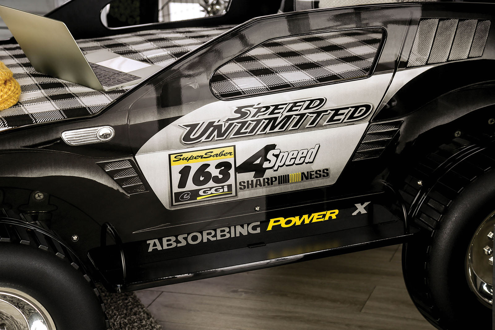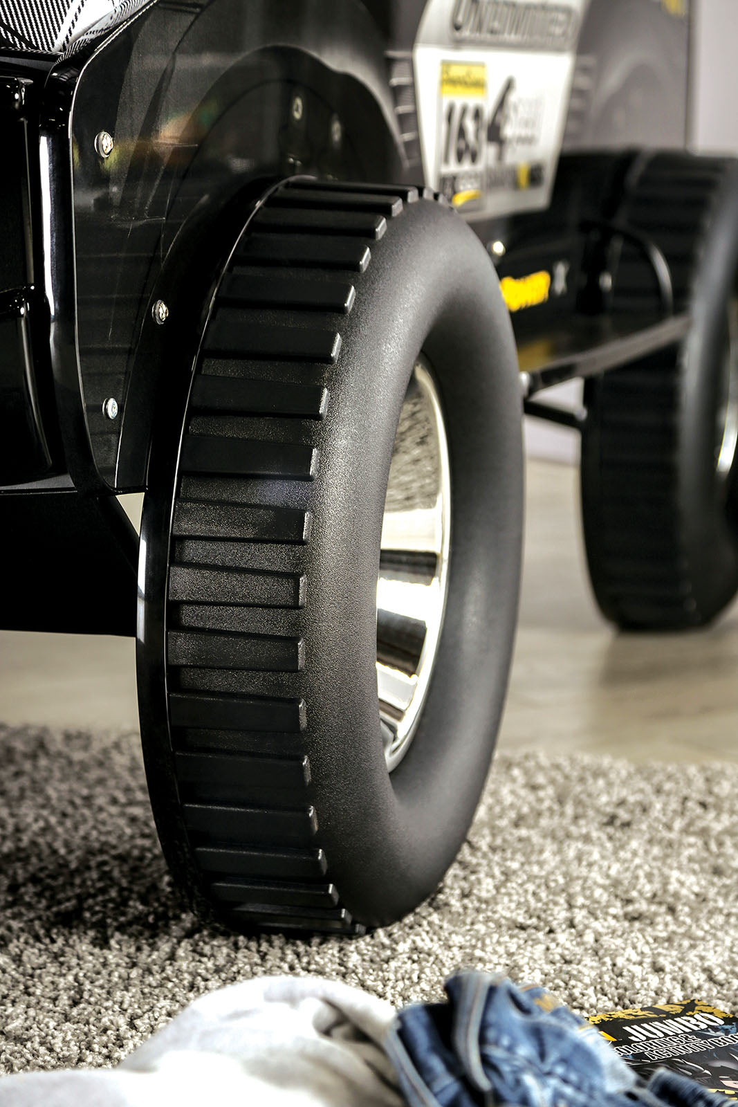 Now your child can experience the excitement of off-road racing in his/her own bedroom! This impressive bed boasts a glossy sturdy design, and is equipped with giant tires and working lights.