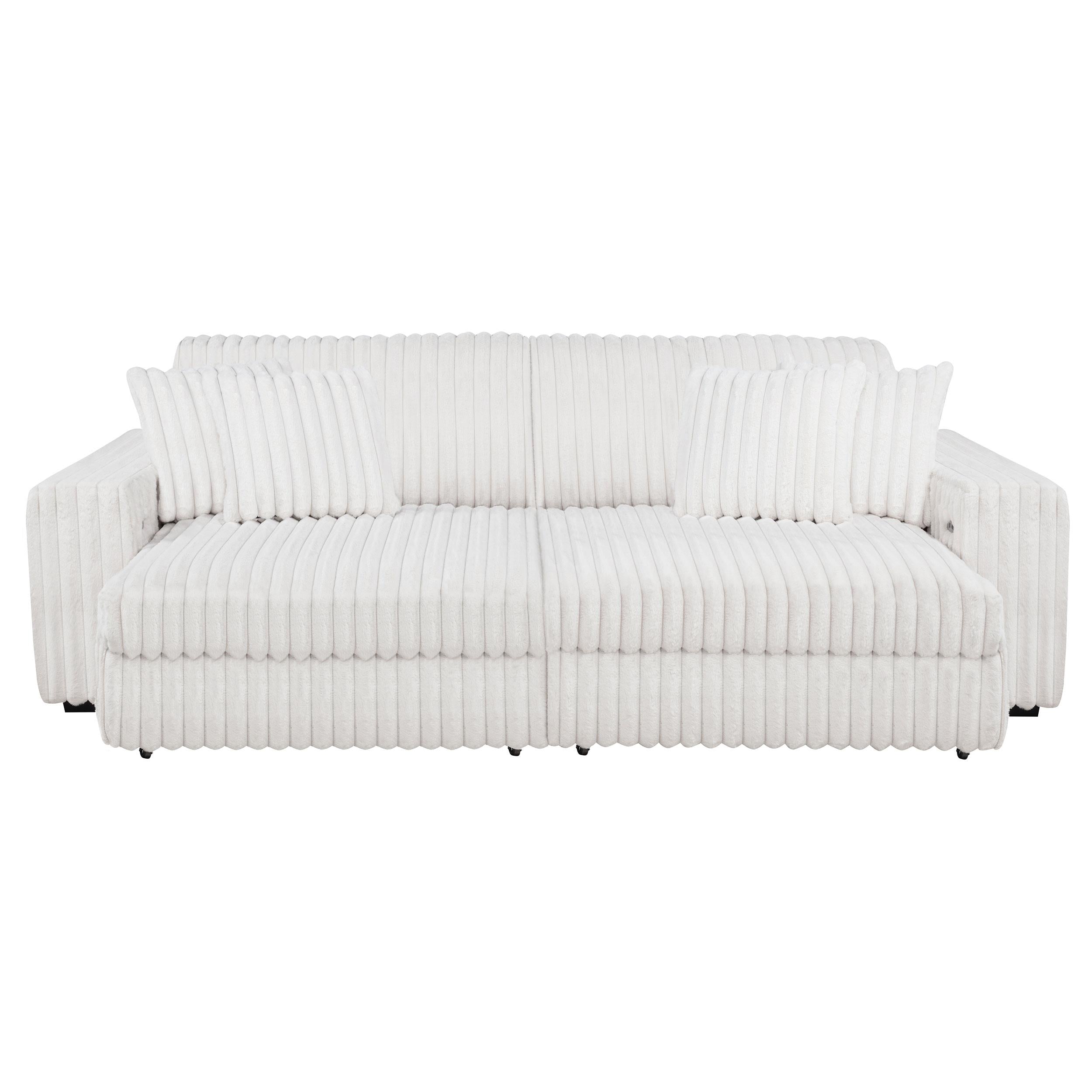 Striking and indulgently soft, this modern sofa set blends bold styling with innovative comfort. Deep vertical channel tufting enhances the rich corduroy upholstery, while dual power chaise functionality allows either side to extend independently, transforming the sofa into a full lounging surface. Wide arms, plush foam cushioning, and an integrated control panel with USB-A and USB-C charging bring next-level convenience. Designed for luxurious, tech-savvy relaxation.