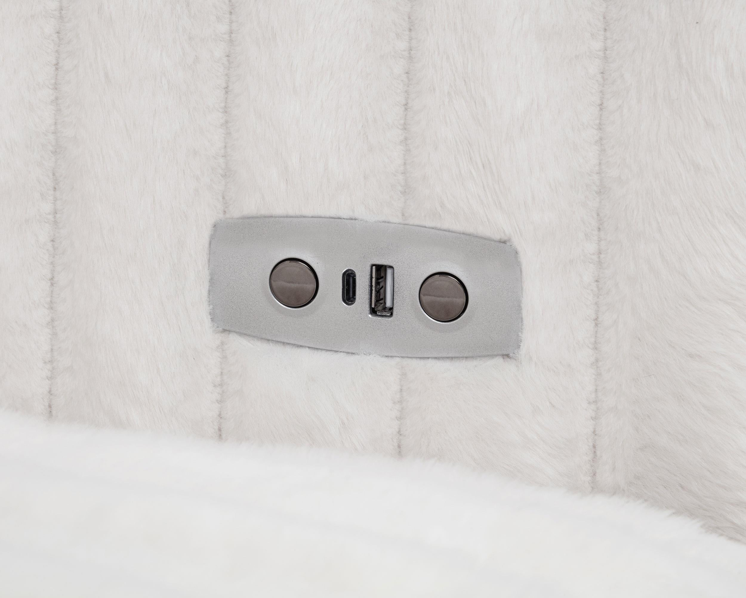 Jacana Ivory Corduroy Upholstered Dual Power Chaise Sofa