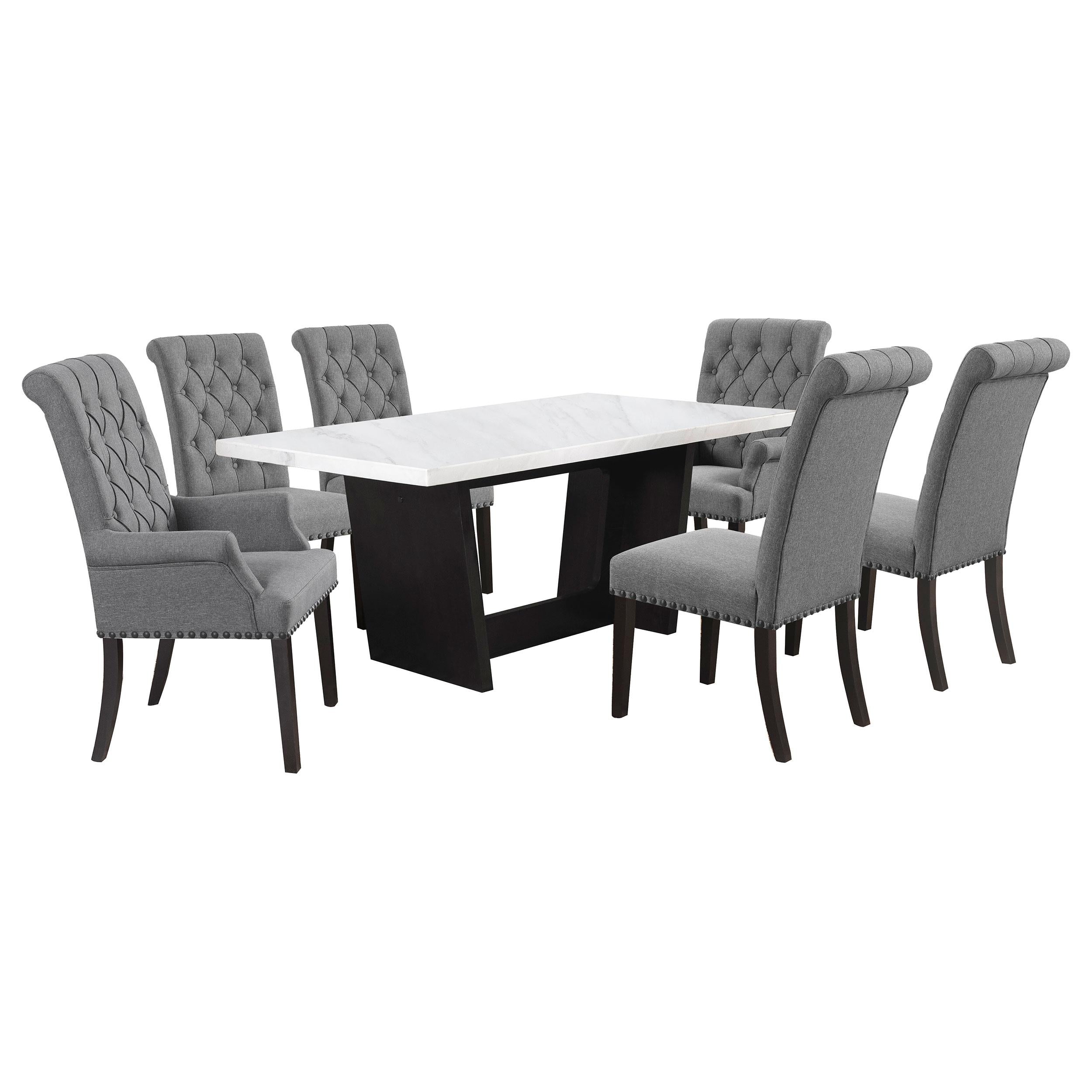 Sherry Gray 7-Piece Rectangular Marble Top Dining Table Set