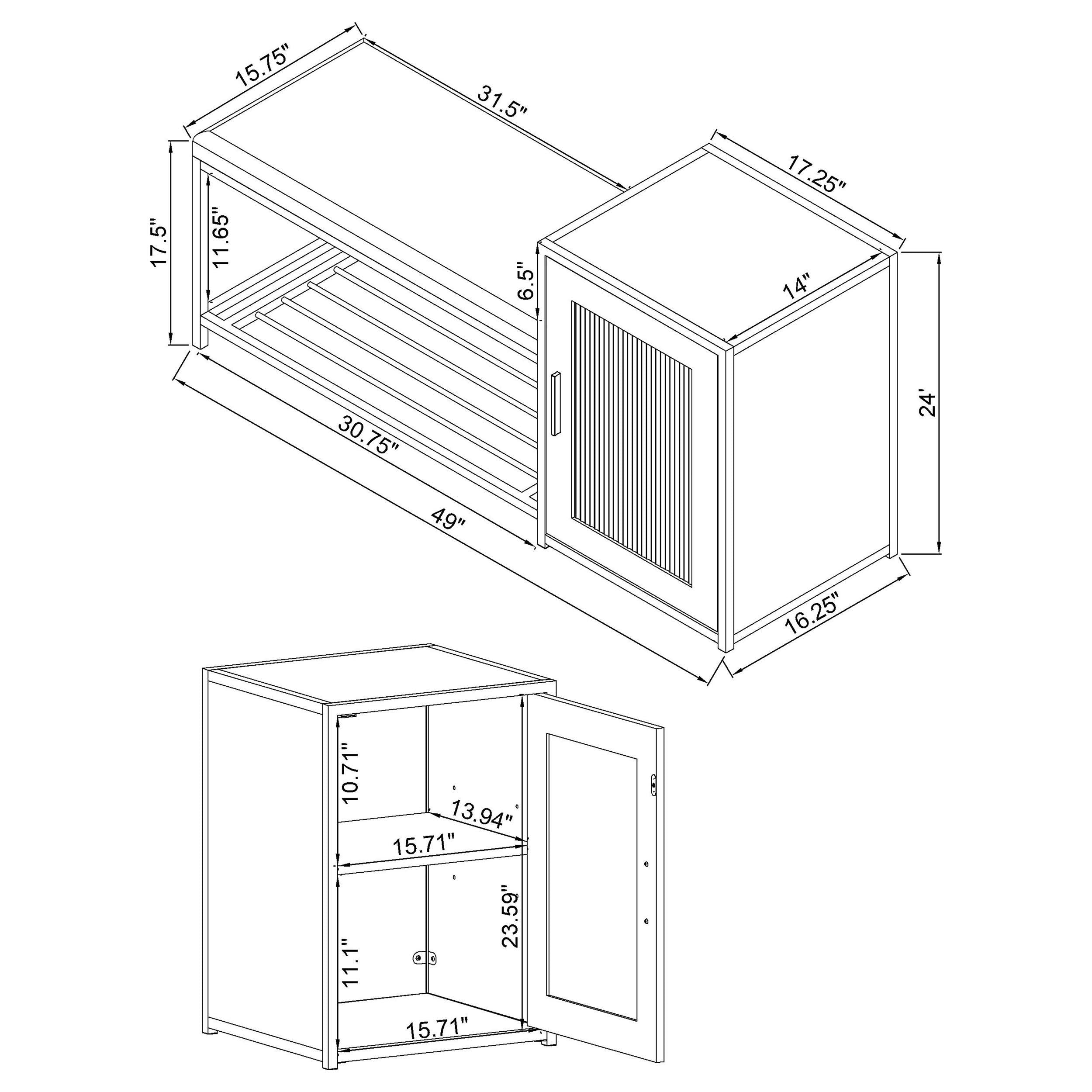 • Item Name: Martino Shoe Storage Entryway Bench with Cabinet Mango and Black by Coaster