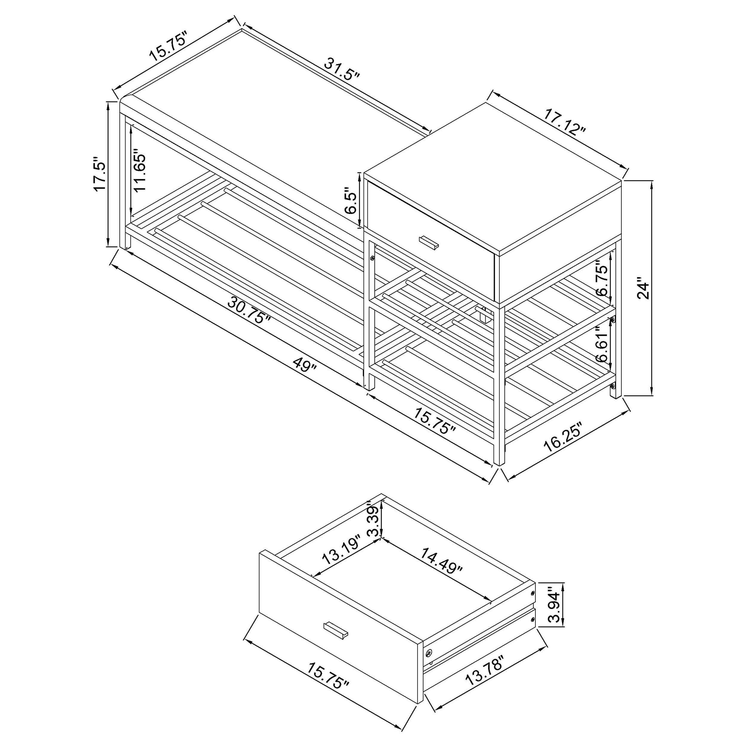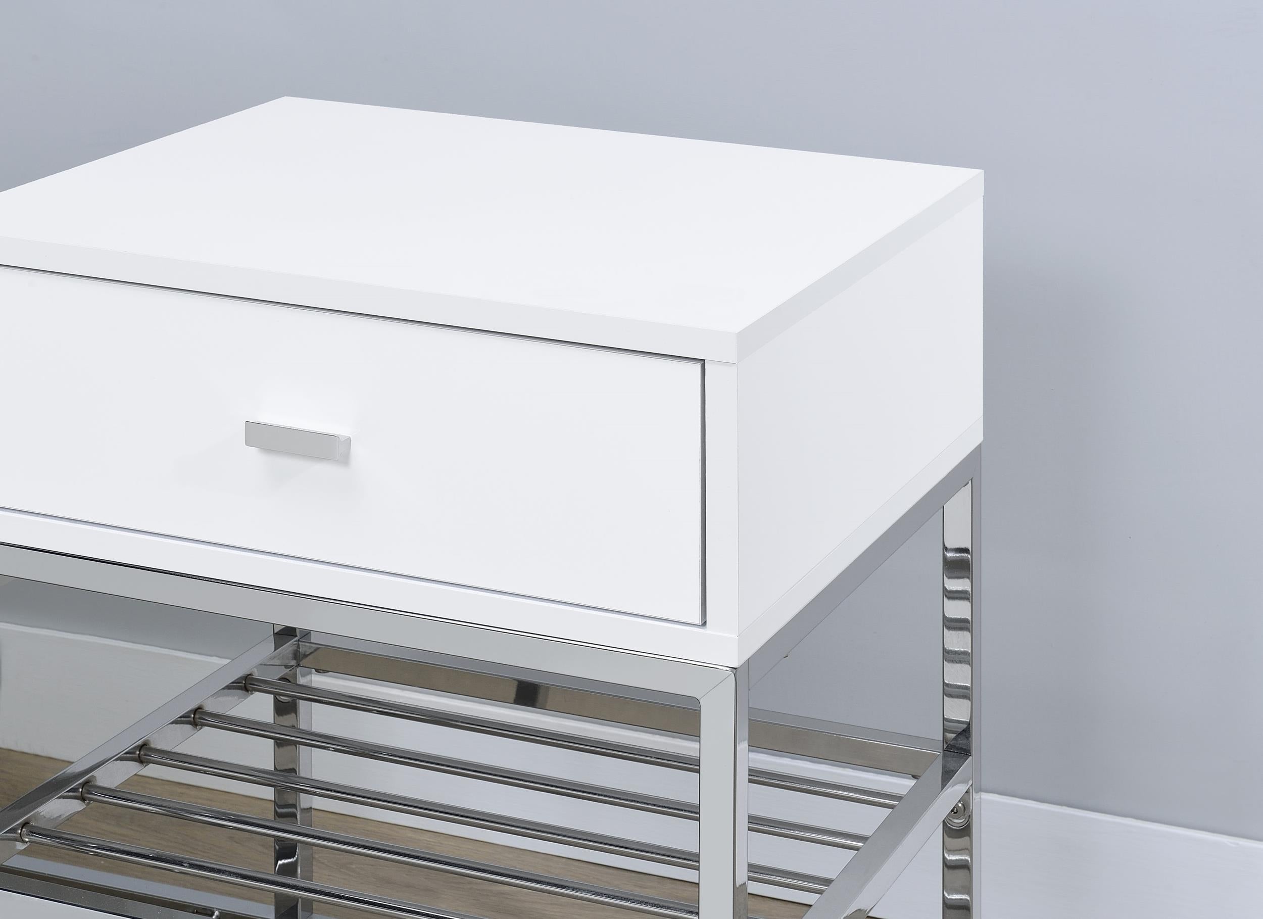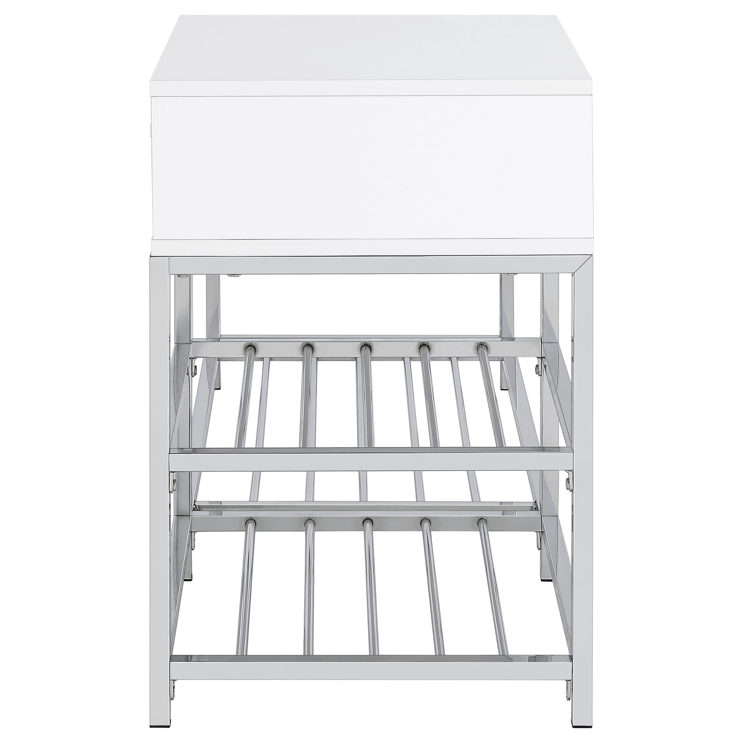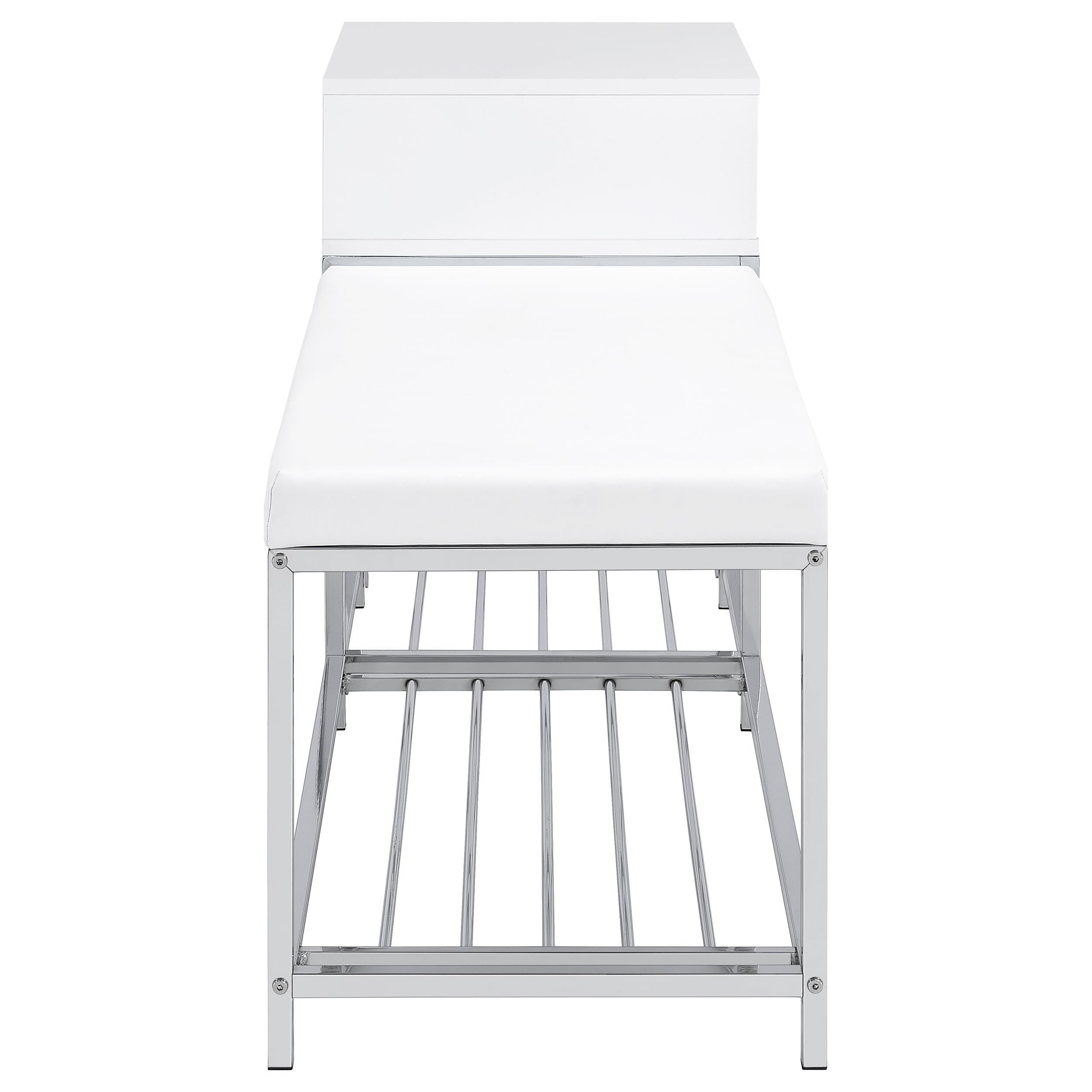 - Item Name: Siega 1-Drawer Shoe Storage Entryway Bench White High Gloss and Chrome by Coaster