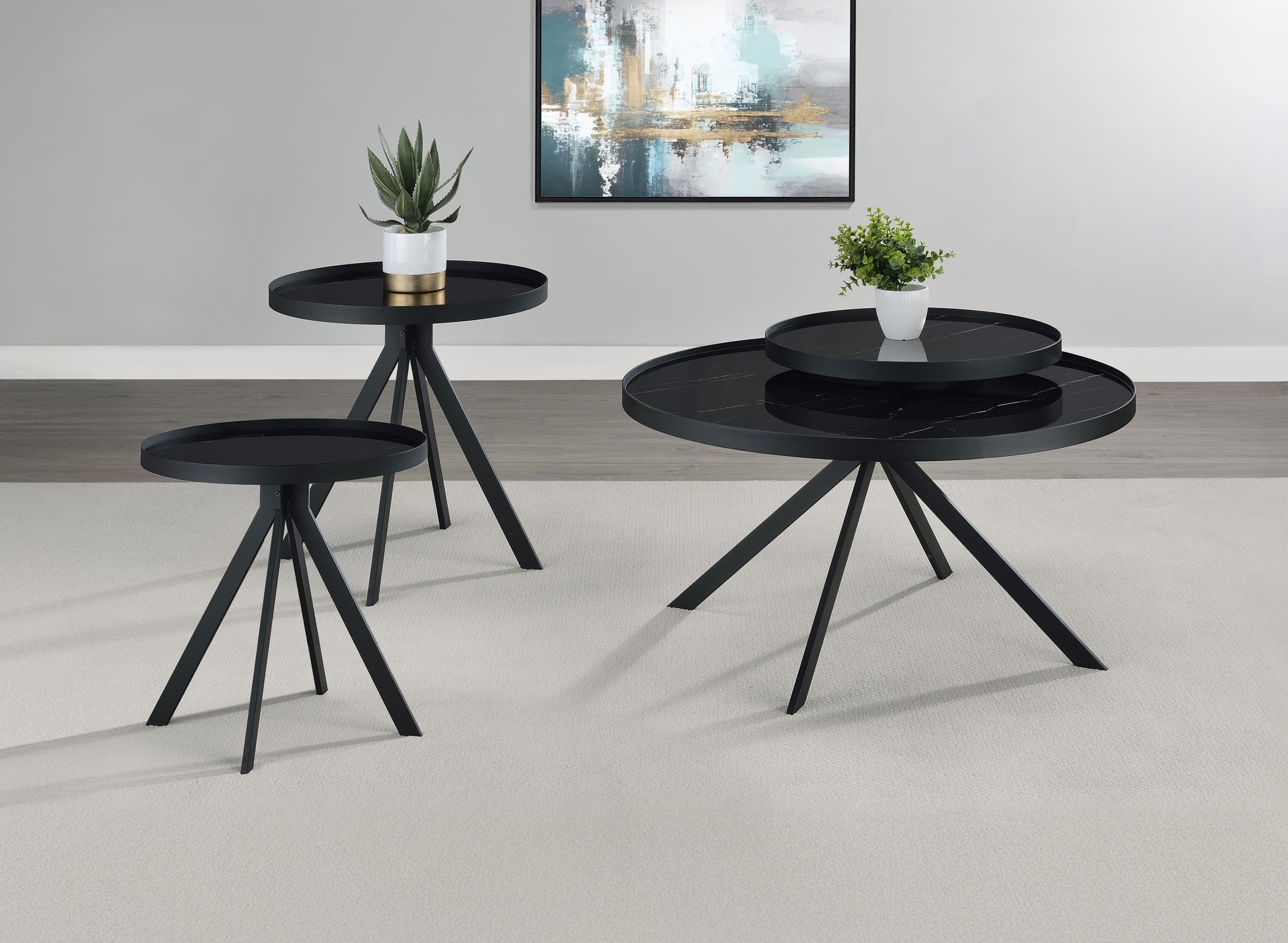 Briggs Black 3-Piece Round Coffee and End Table Set