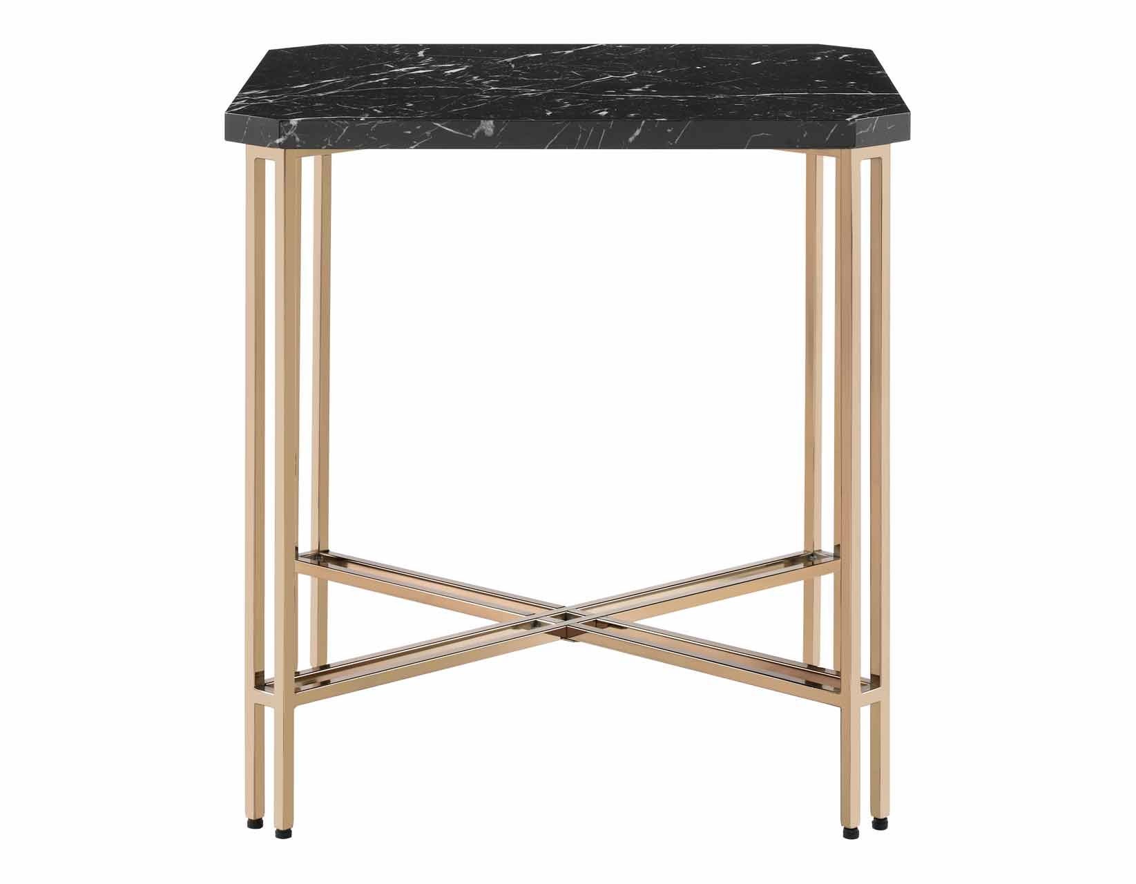 An elegant set of Occasional tables with a glamorous traditional design, Daxton delivers a great look at a price you will love. A black faux-marble top with clipped corners gives these tables an upscale look, enhanced by the stunning golden champagne metal base. Choose from Cocktail, End or Sofa Table and mix or match to appoint your room perfectly.