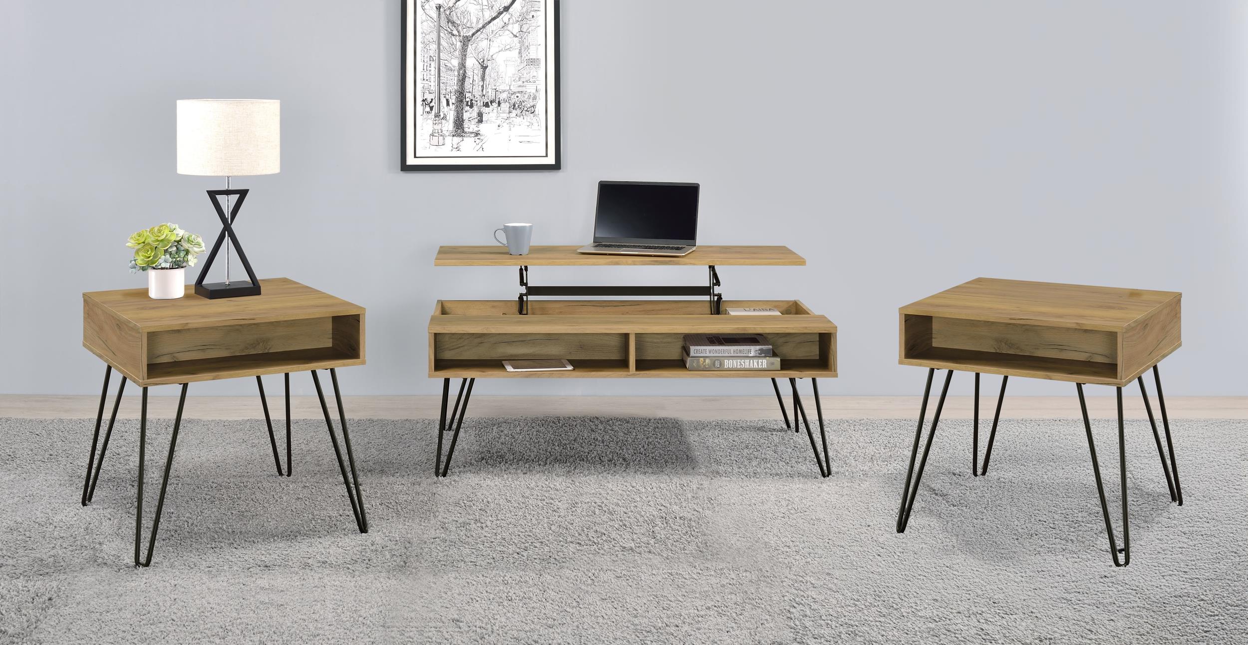 Fanning Golden Oak 3-Piece Lift Top Coffee and End Table Set
