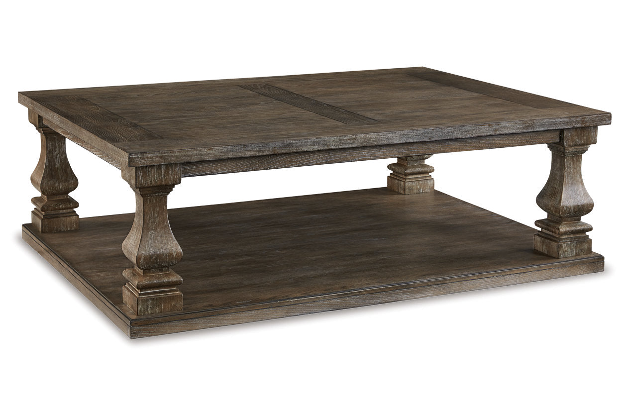 Homey. Hearty. Heavenly hued. Luring with a distressed weathered gray finish and square baluster legs set on a broad lower shelf for great presence, this occasional table set is sure to make your homestead feel that much more like home. The look is beautified with elm veneers and a framed and plank-effect tabletop for a richly crafted masterpiece made for years of satisfaction. Luna Furniture introduces Johnelle Coffee Table and 2 End Tables to enhance the beauty of your living spaces.