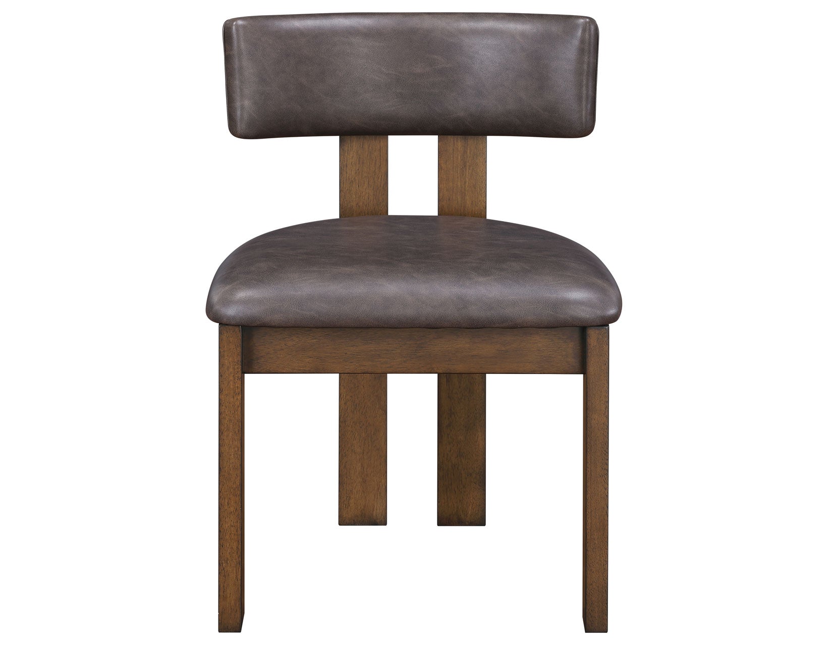 - Experience leather-like luxury at an affordable price with the easy-care dark brown vegan leather cover on the chair