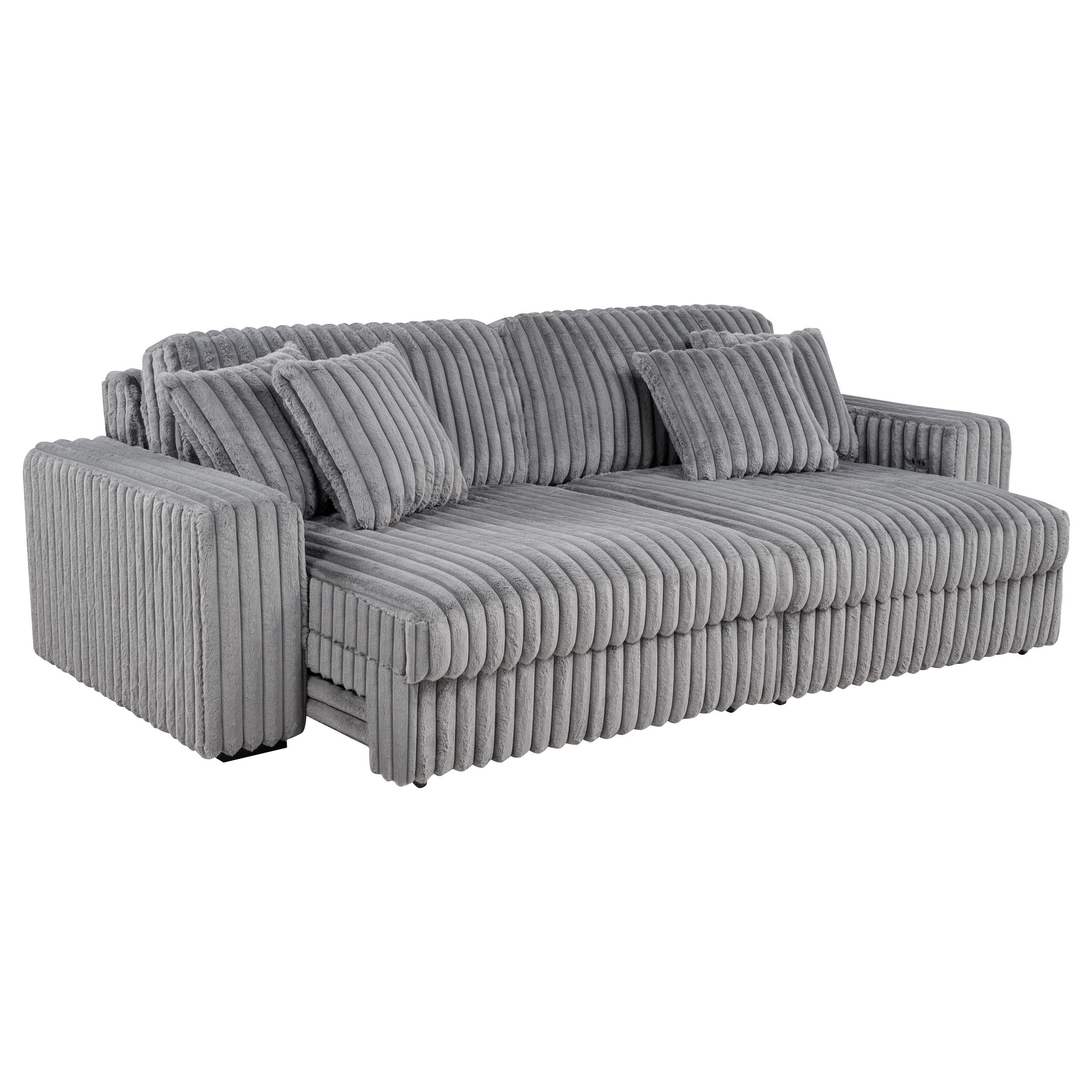Striking and indulgently soft, this modern sofa set blends bold styling with innovative comfort. Deep vertical channel tufting enhances the rich corduroy upholstery, while dual power chaise functionality allows either side to extend independently, transforming the sofa into a full lounging surface. Wide arms, plush foam cushioning, and an integrated control panel with USB-A and USB-C charging bring next-level convenience. Designed for luxurious, tech-savvy relaxation.