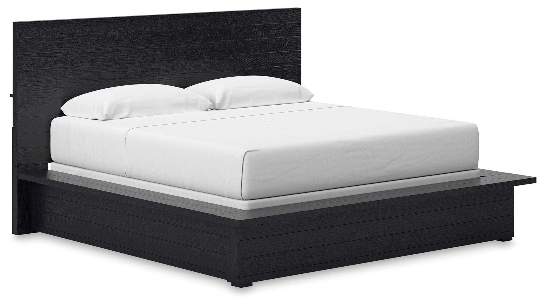 Londer King Panel Bed with Mirrored Dresser and Nightstand in Black