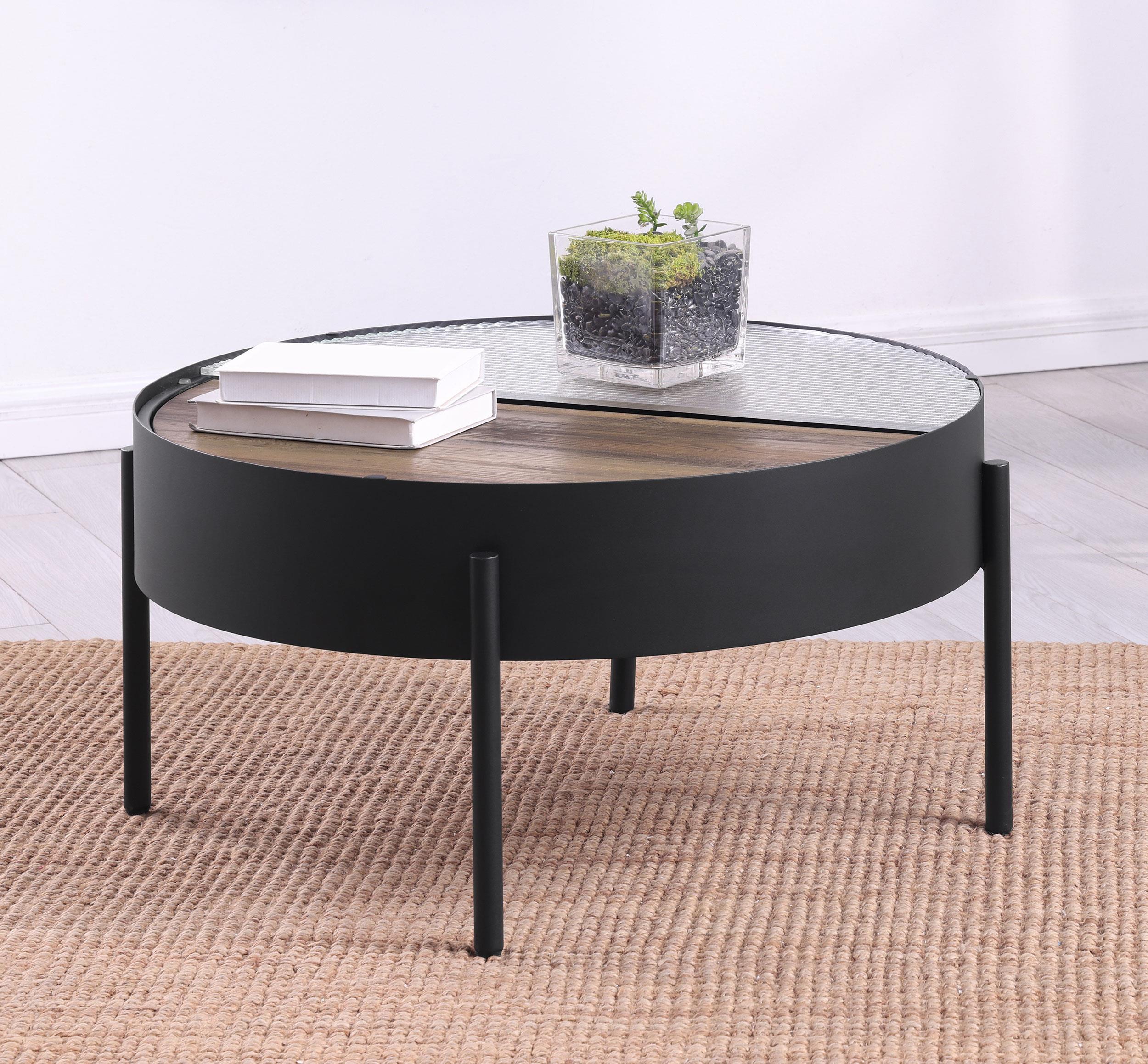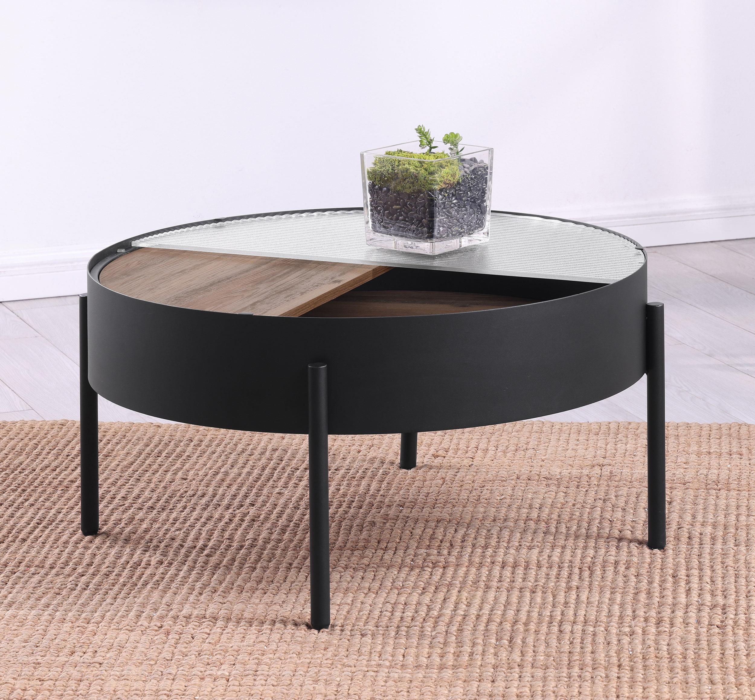 Ozella Sandy Black Round Coffee Table with Hidden Storage