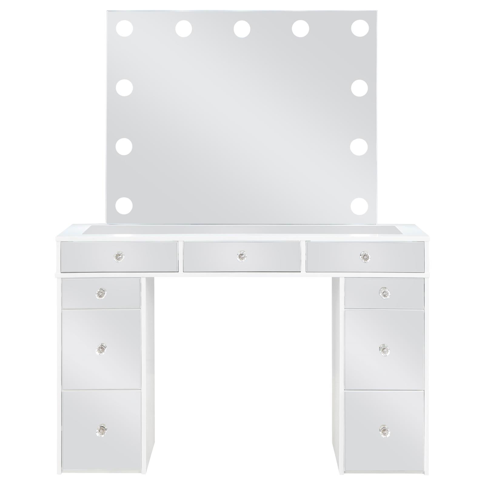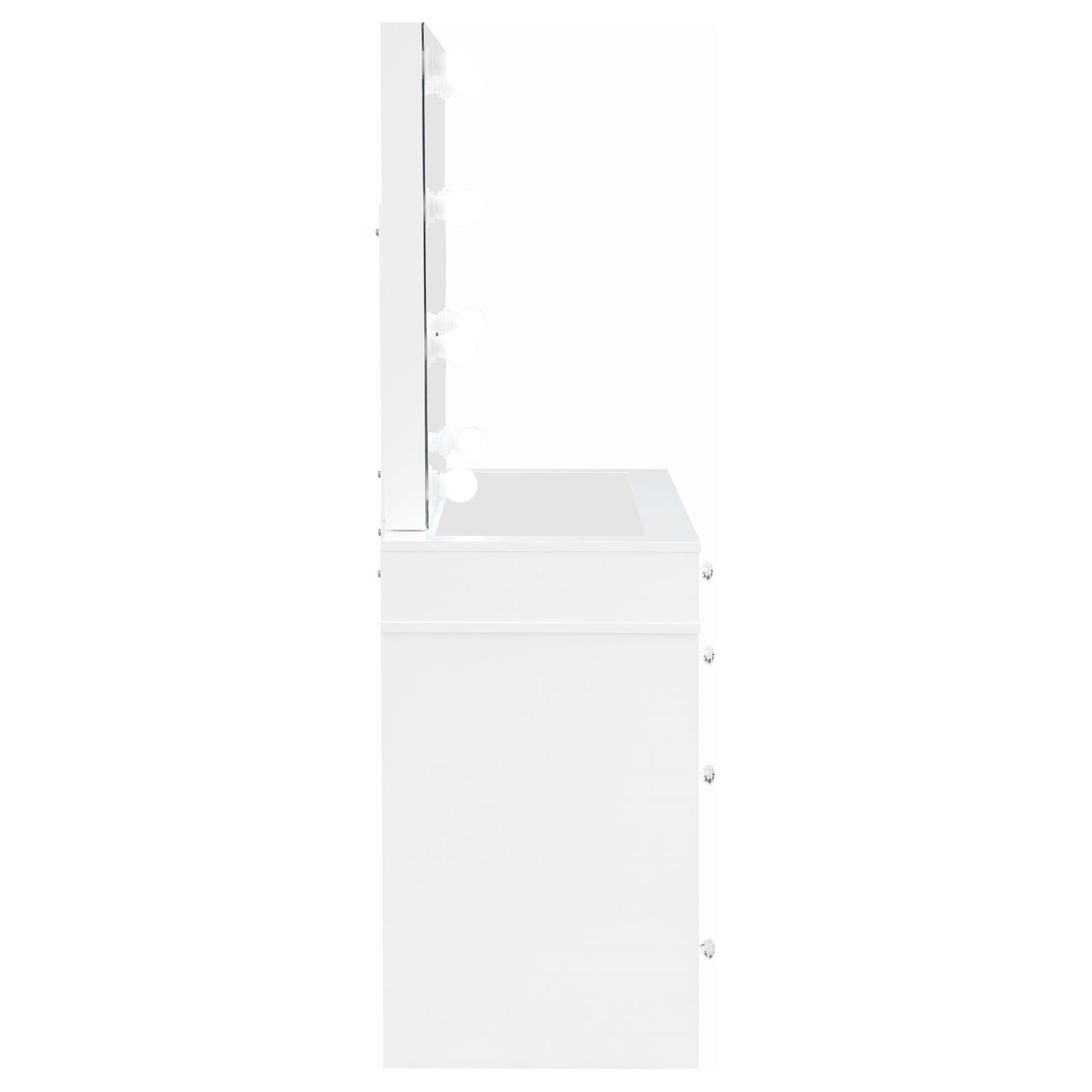 Regina White 3-Piece Makeup Vanity Table Set Hollywood Lighting and Mirror