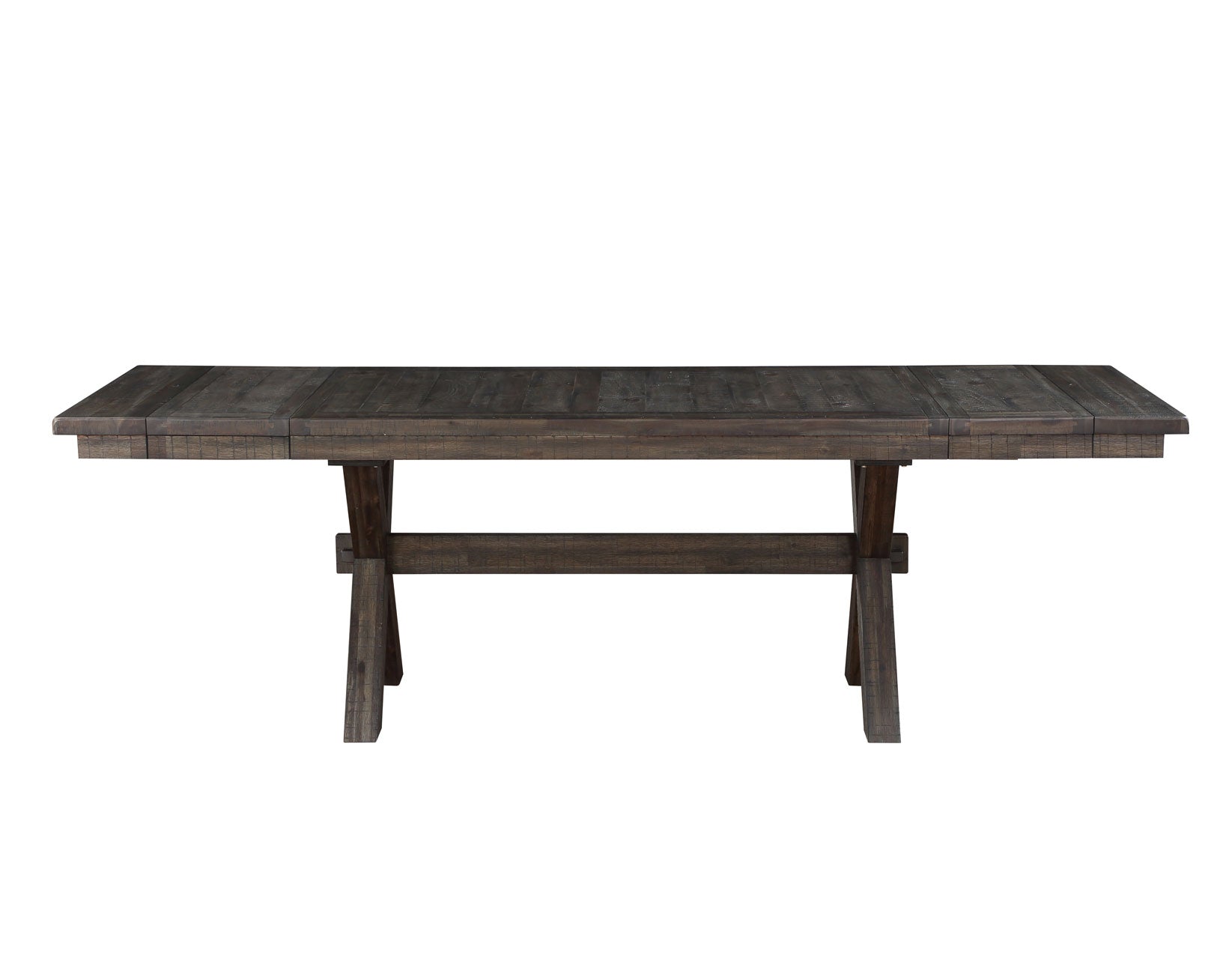 The Riverdale 72-96-inch Dining Table is a dining centerpiece that beautifully becomes the centerpiece of any dining setting. Crafted with meticulous care from pine veneers, acacia solids and resilient engineered woods, Riverdale extends from 72 to a sprawling 96 inches to easily accommodate up to ten guests. Solid wood legs, paired with robust stretchers, guarantee a foundation of stability and sophistication in a detailed modern ranch design. The table’s allure is heightened by the intricate wood scoring, saw rasping, and a finish rub-through, lending it a distressed, vintage-inspired charm.