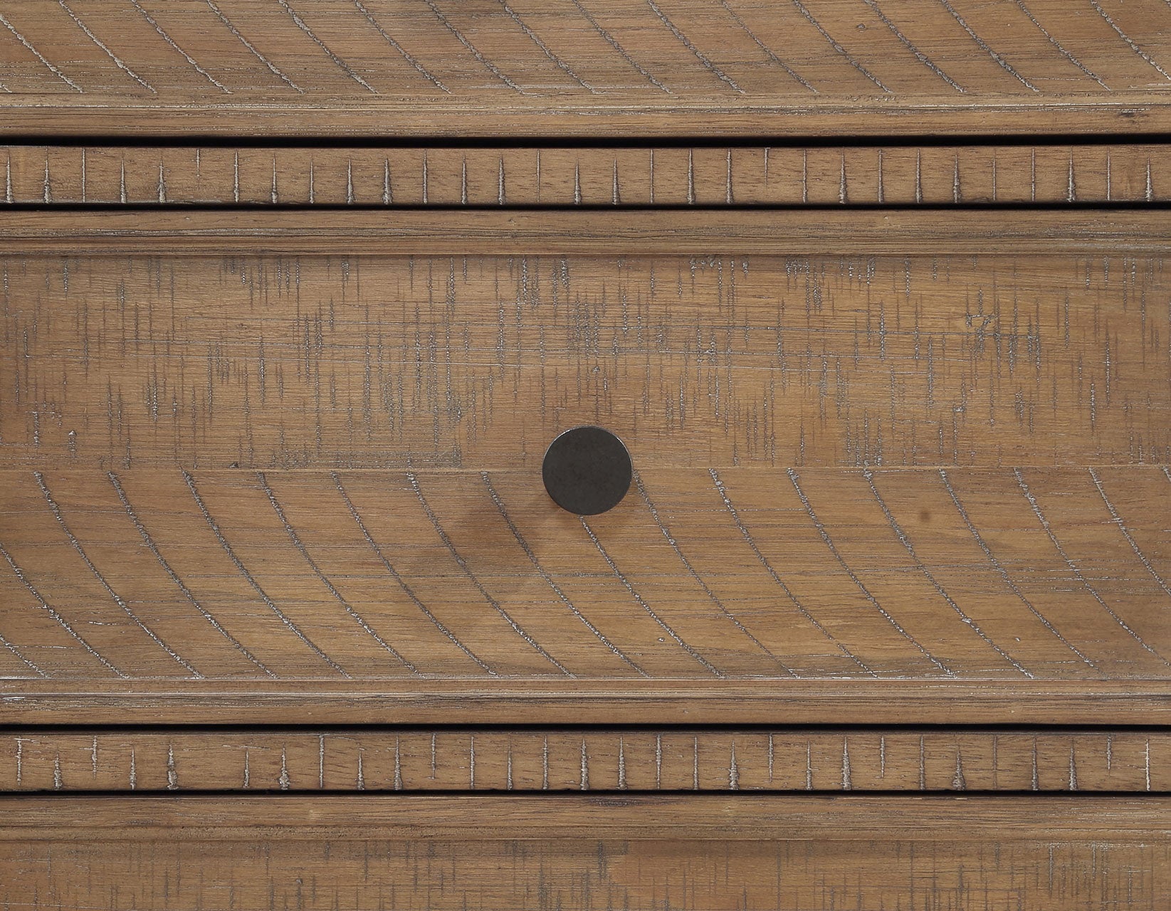Getting ready for the day will look a whole lot better with the Riverdale Dresser and Mirror combo. Create acohesive bedroom look starting with the dresser featuring a rustic distressed finish, eight spacious drawers, and a convenient door for ample storage. The felt-lined drawers protect your delicates, while the matching mirror adds a touch of elegance and convenience. With solid pine and Asian hardwood construction, this set is built to last and infuse your bedroom with rustic character. Elevate your bedroom décor with the Riverdale Dresser and Mirror, the perfect blend of style and functionality.