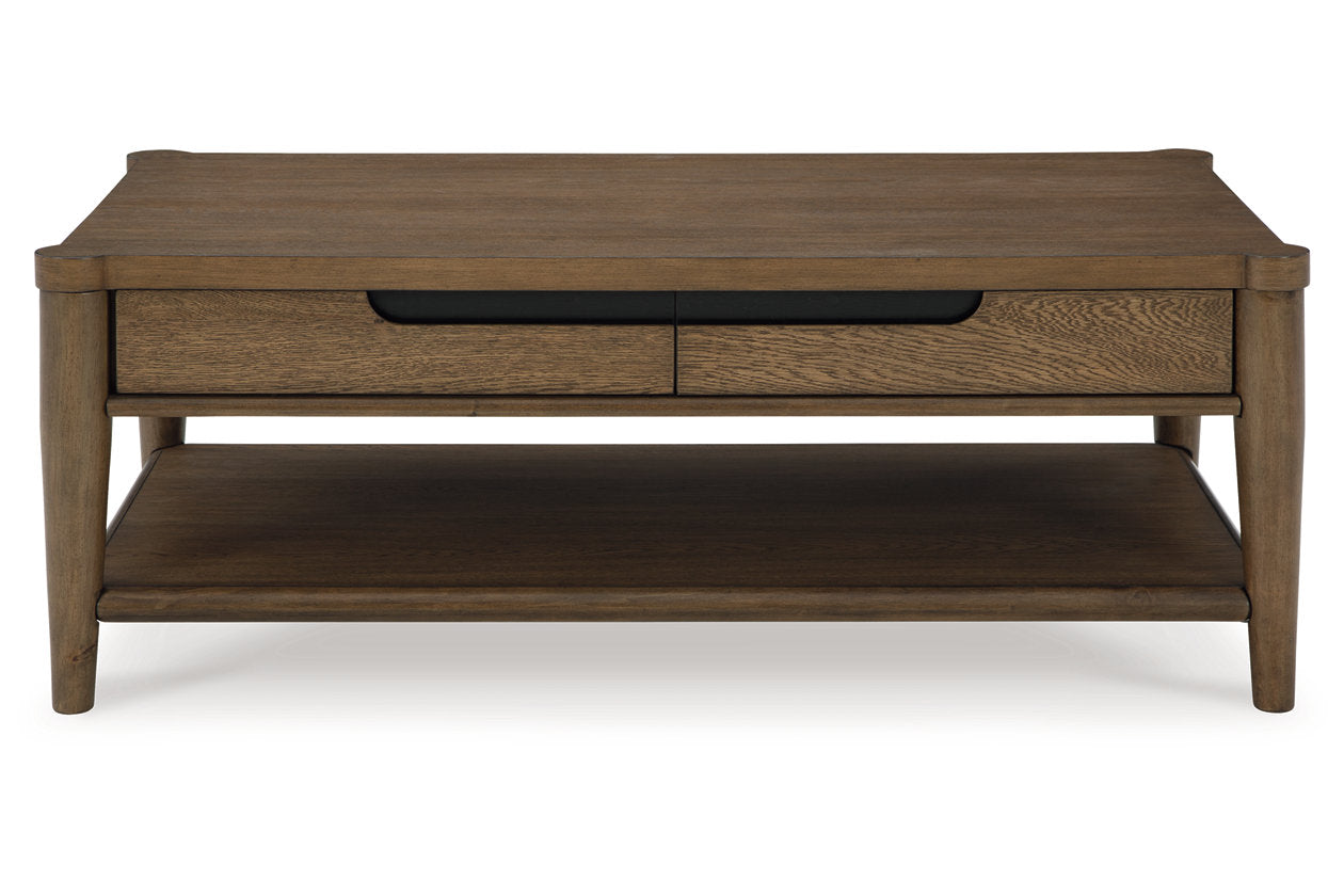 Elevate your modern or mid-century living room with this stylish coffee table. It combines sophistication and functionality, allowing you to showcase decorative items on an open shelf and conveniently store gaming controllers and remotes in the spacious drawers. Imagine entertaining guests with this gorgeous table, adding a touch of minimalism with big character to your home. 2 Matching end tables included. Luna Furniture introduces Roanhowe Coffee Table and 2 End Tables to enhance the beauty of your living spaces.