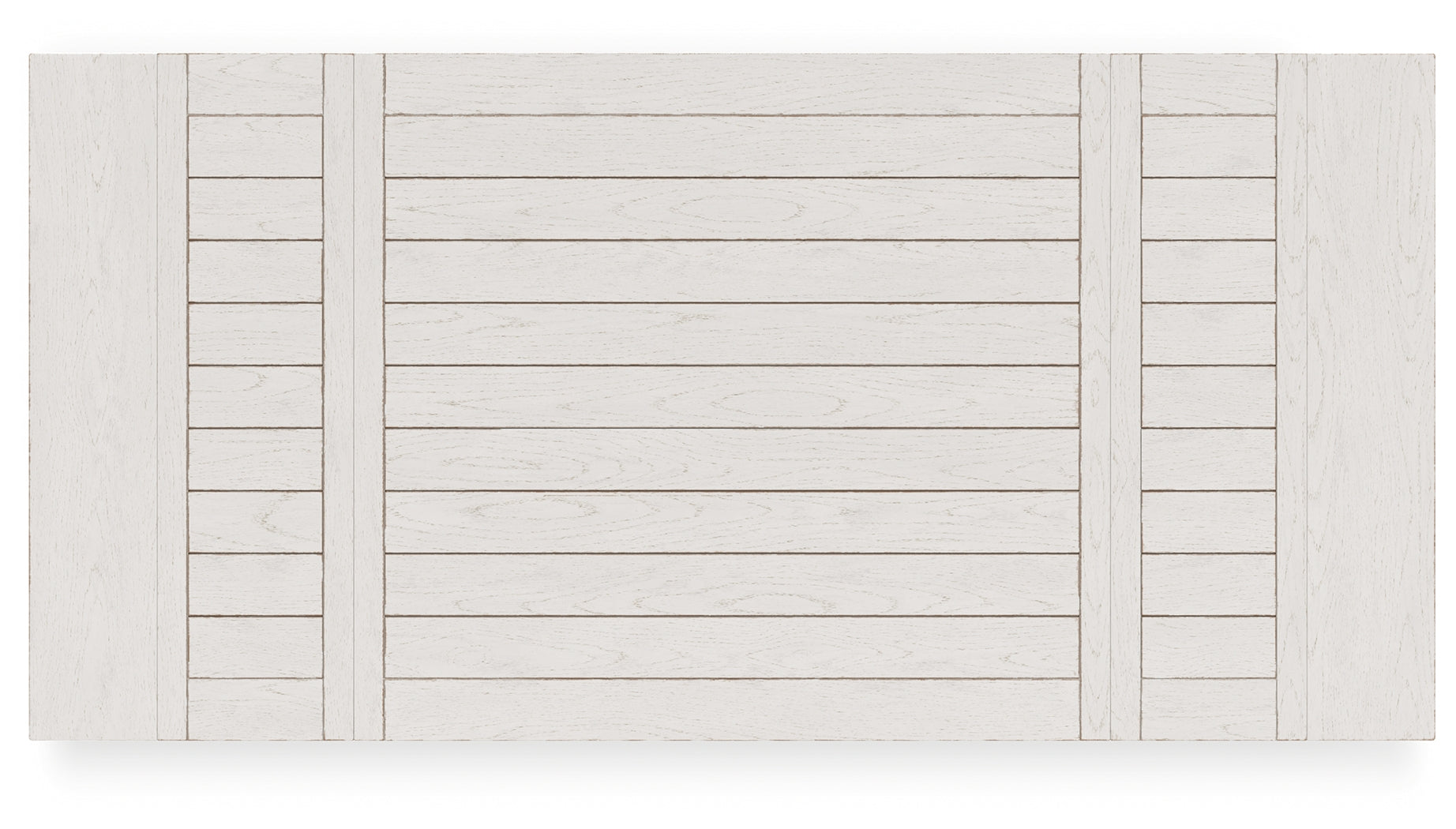 - Antiqued white finish with wood grain texture