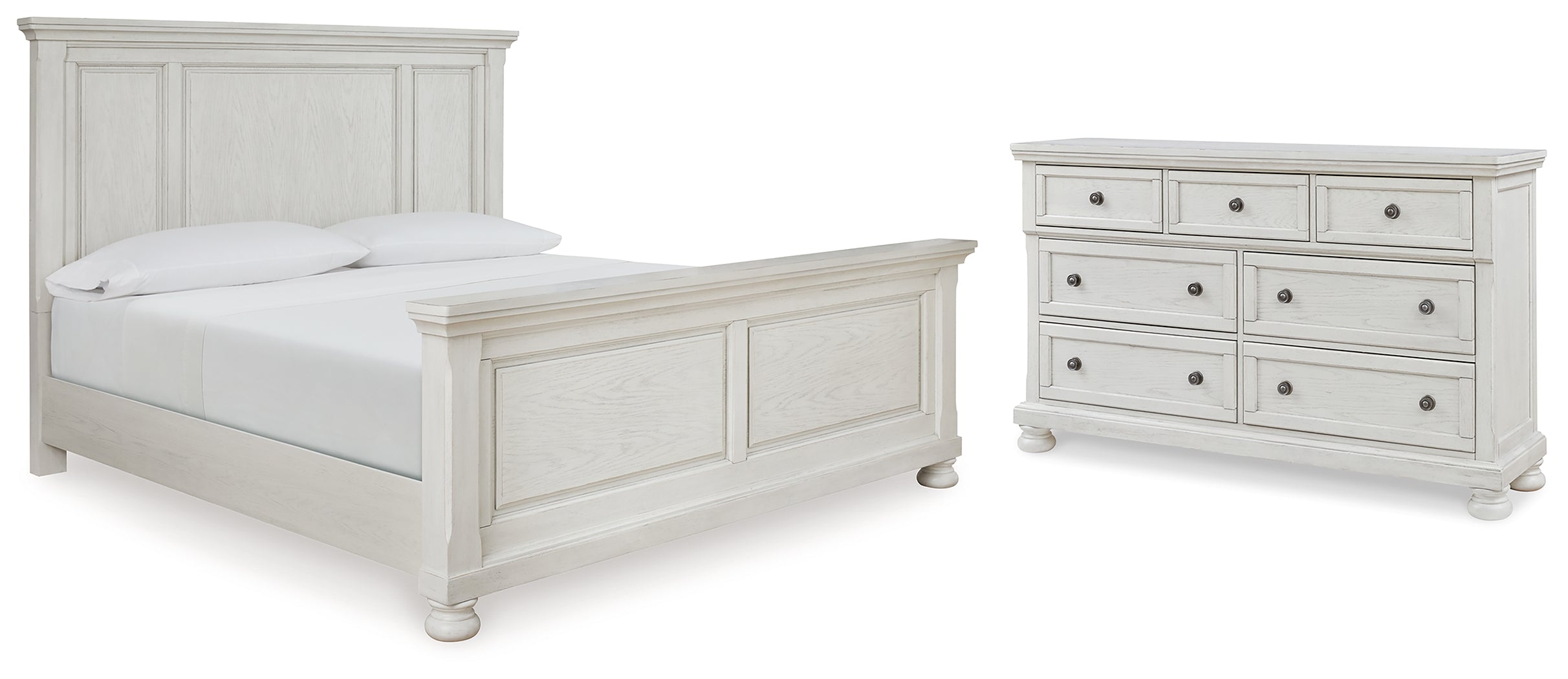 Robbinsdale King Panel Bed with Dresser in Antique White