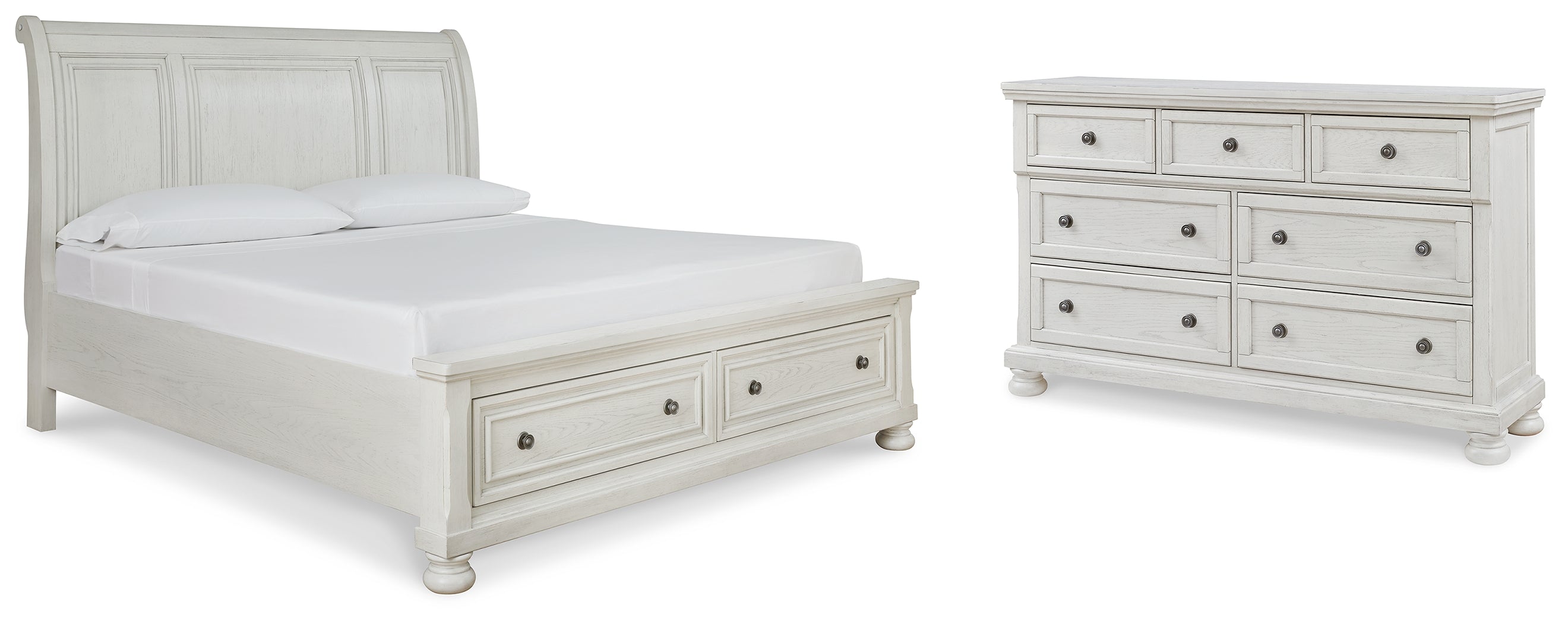 Robbinsdale Queen Sleigh Bed with Storage with Dresser in Antique White