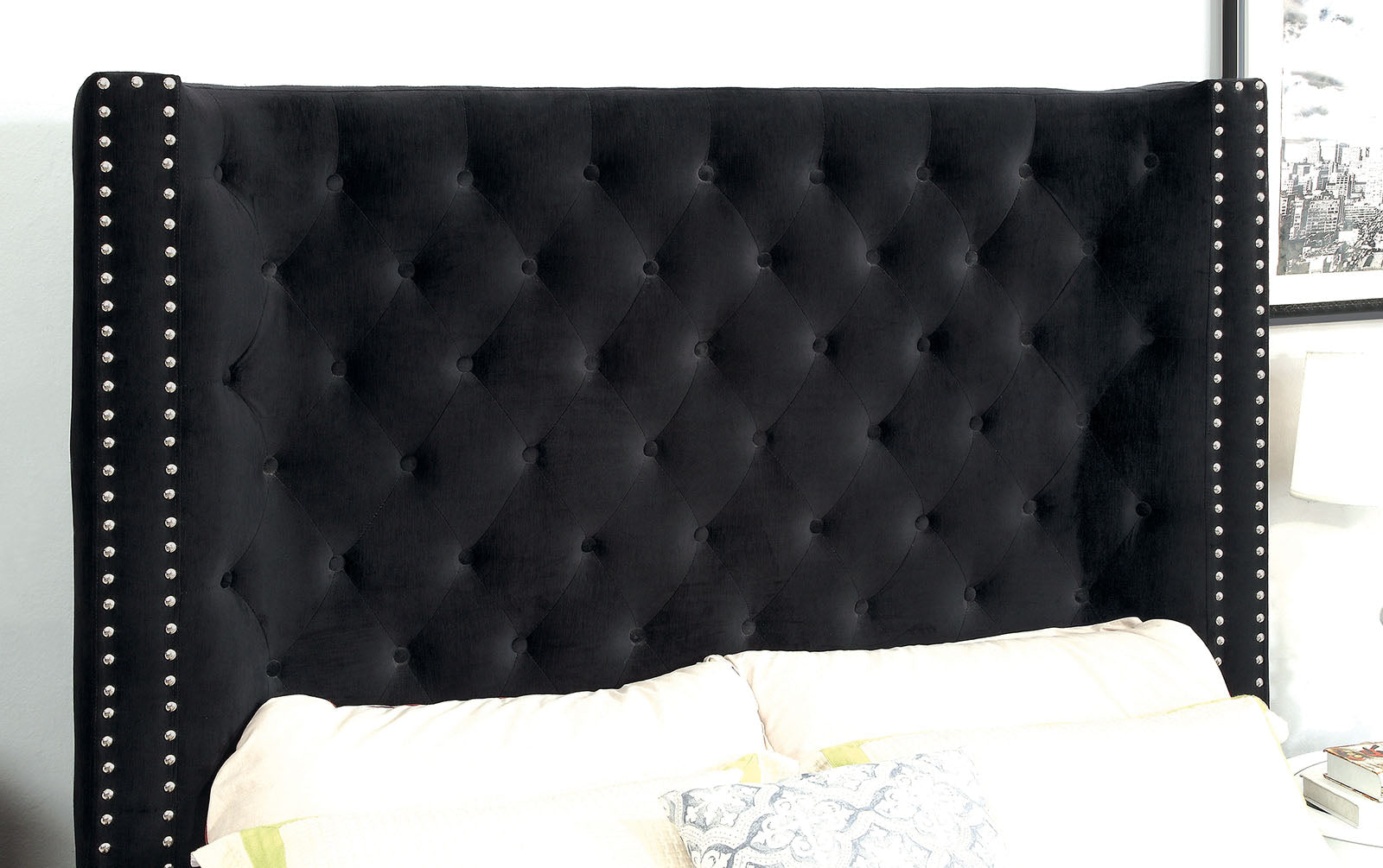 Charming and simple, this fabric bed suits all styles and will surely become a versatile piece to be cherished for years to come. The timeless, wingback headboard curves in ever so slightly and is button-tufted in a beautiful diamond pattern. Meanwhile, edges are lined with nailhead trim to add a touch of visual interest while maintaining the clean, classic look with its velvet-like upholstery.