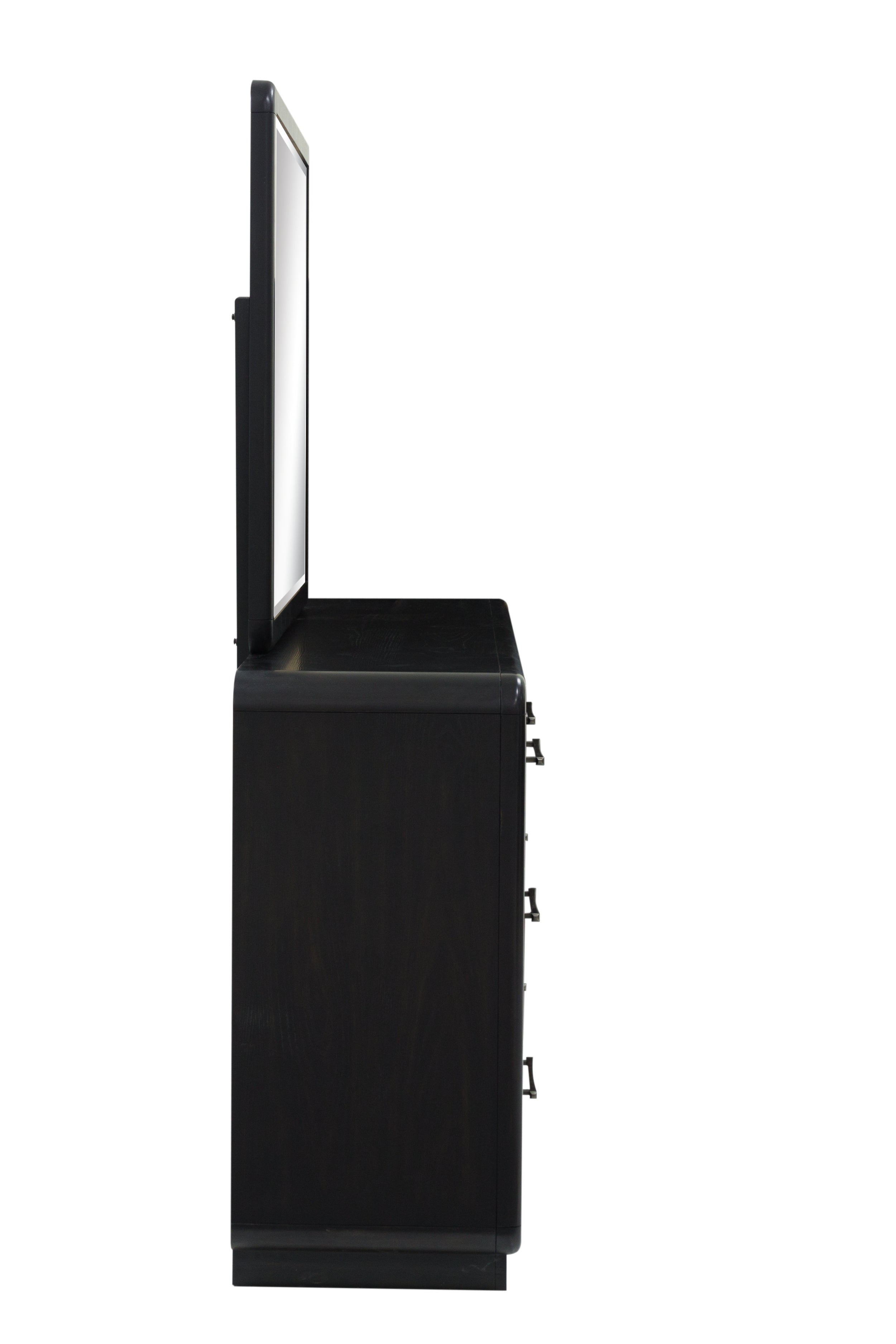 Inspired by art deco design, this softly shaped bedroom package makes a lasting impression in a simply stunning way. Magnificent curved silhouettes are enhanced by a rich layered black finish on the textured wood grain surface. These are the statement pieces you’ve been dreaming of to elevate your contemporary inner sanctum.