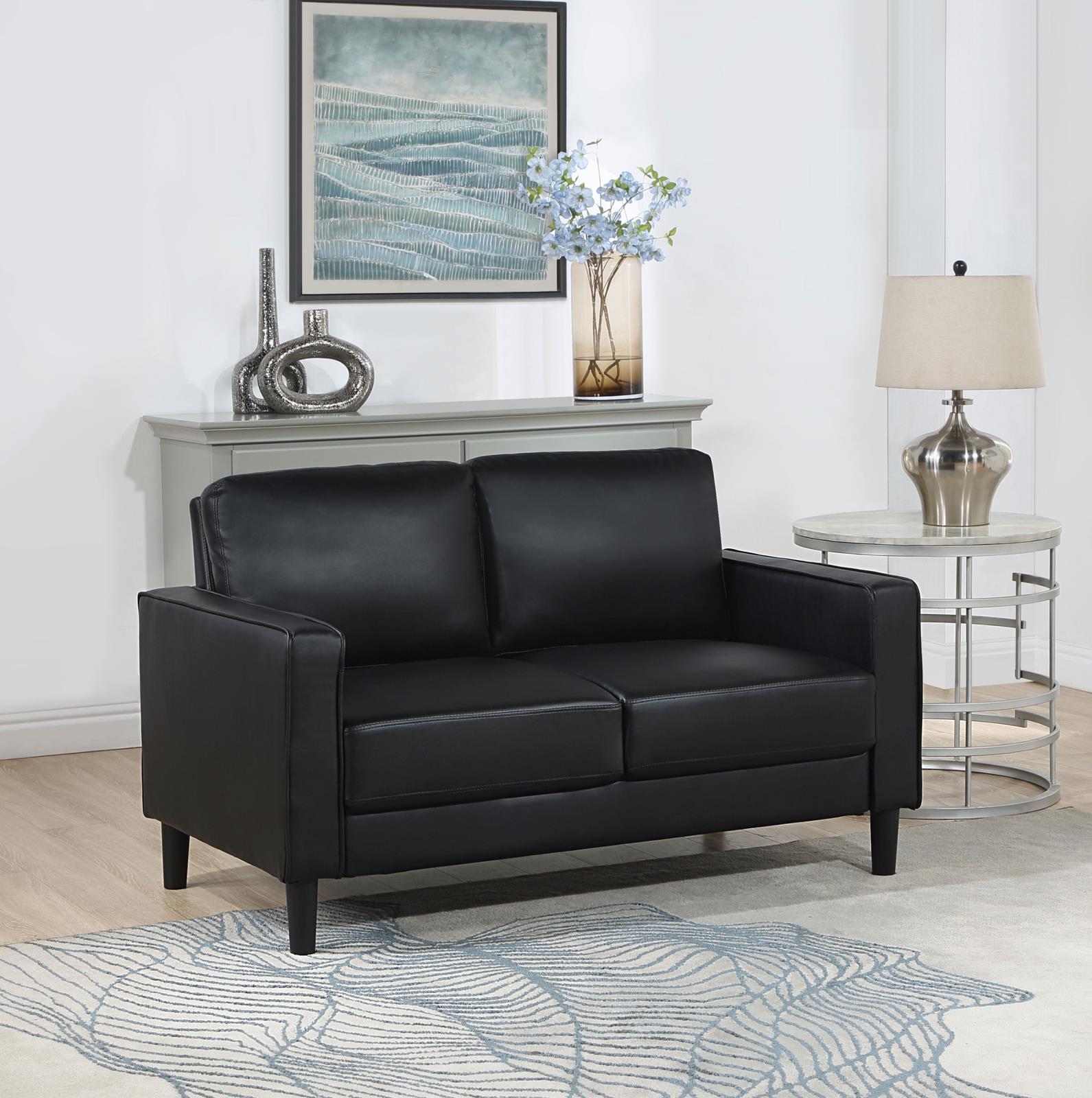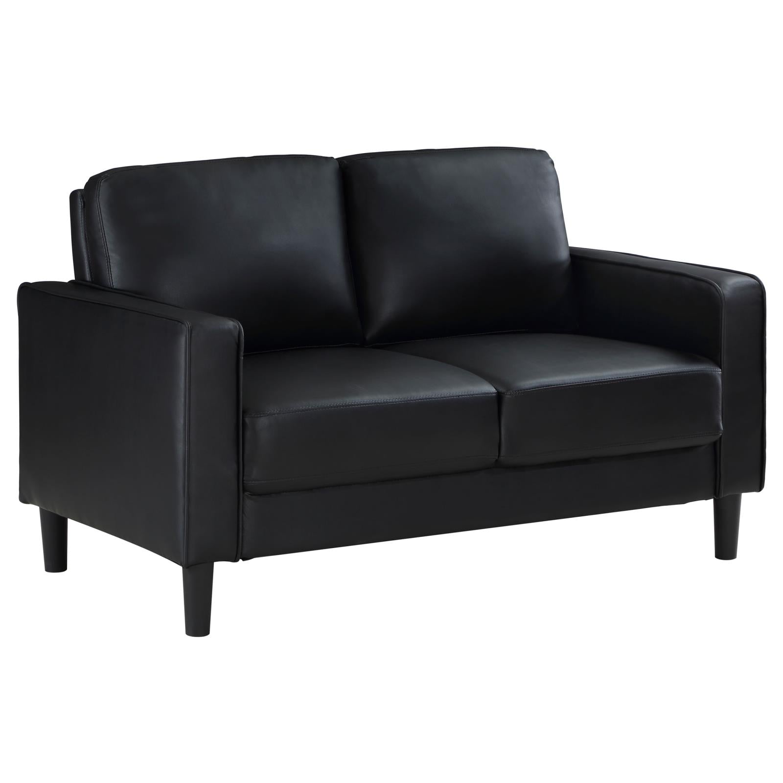 Ruth Black Upholstered Track Arm Faux Leather Loveseat